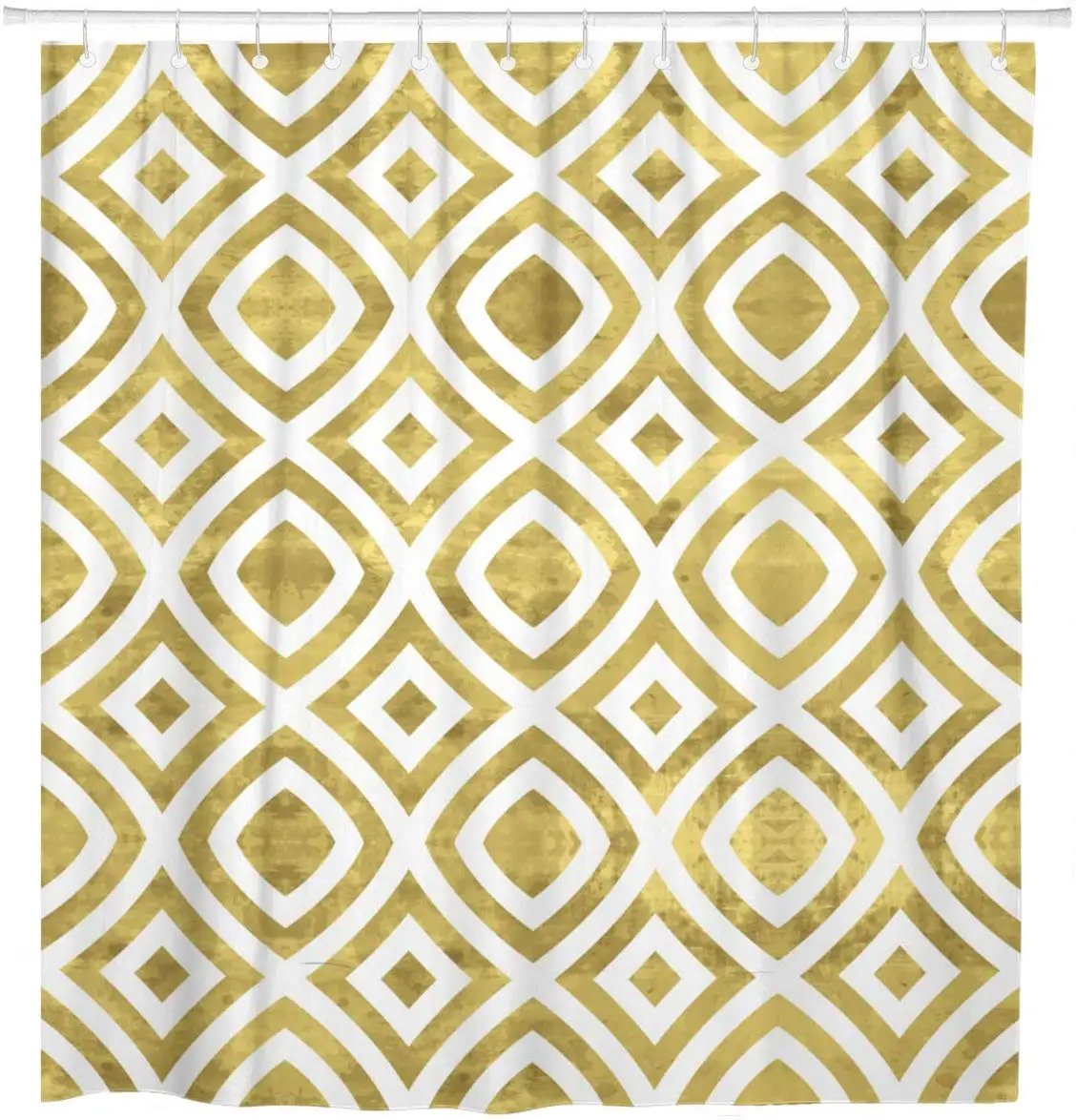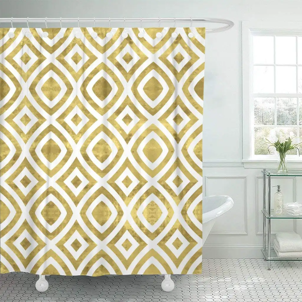 Роскошный белый и золотой узор абстрактные геометрические Современные Блестящие занавески для душа Водонепроницаемый полиэстер ткань 72x72 дюйма набор