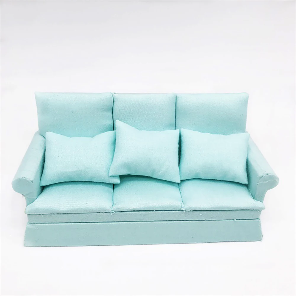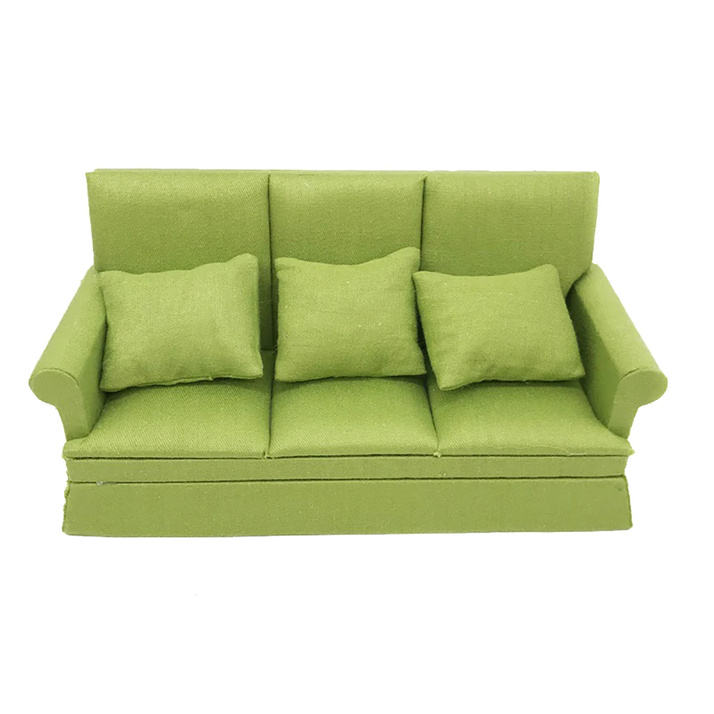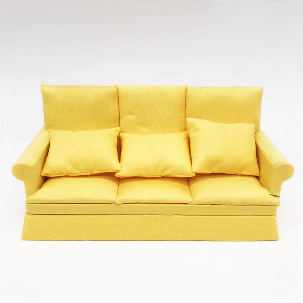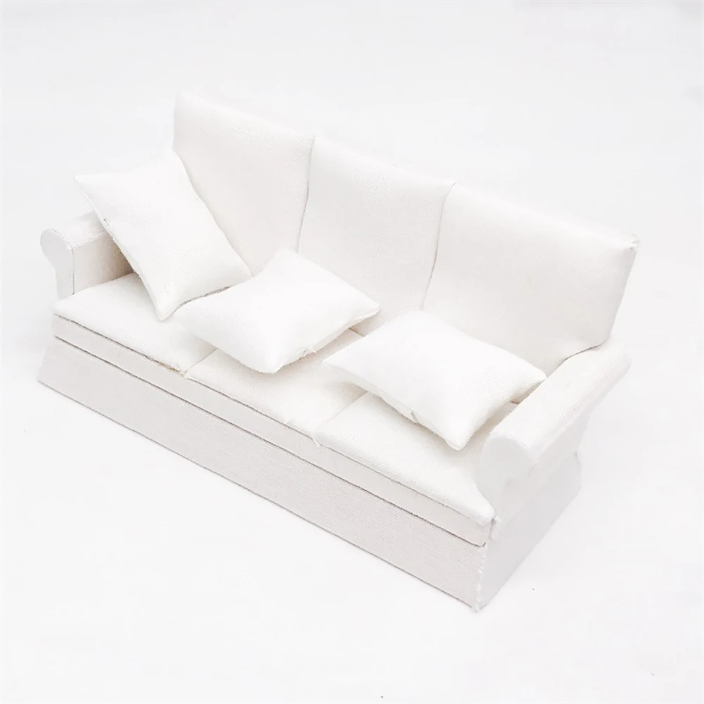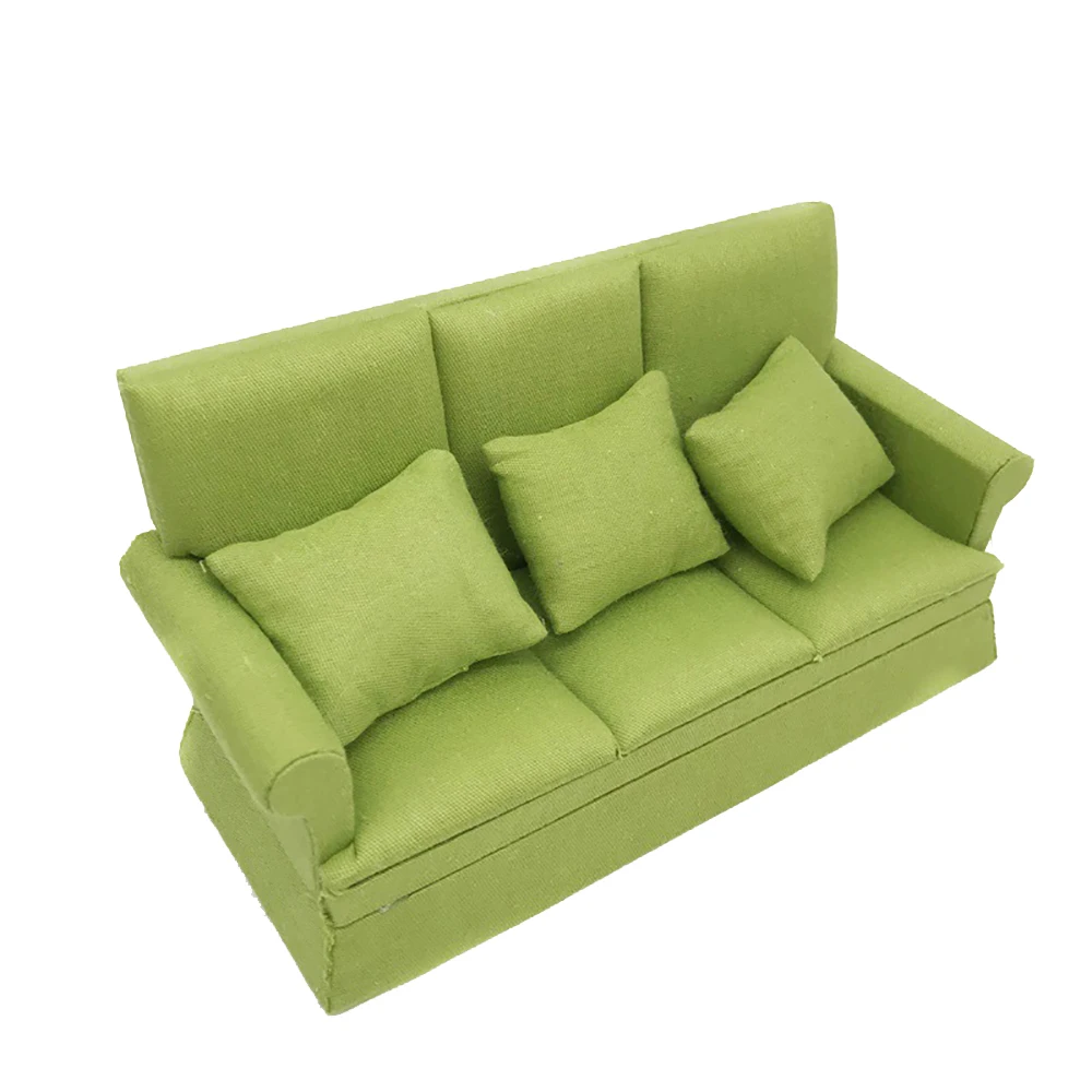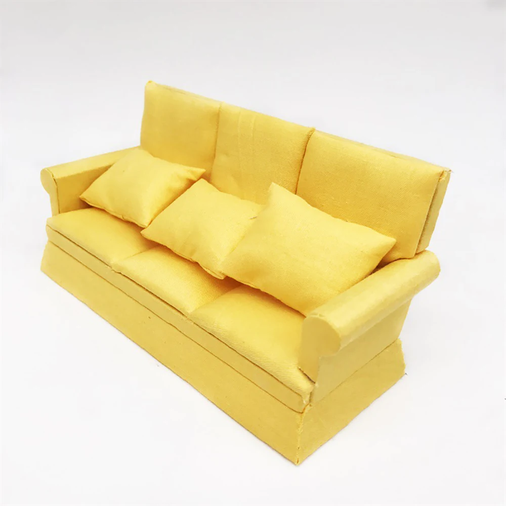 112 Dollhouse Miniature Accessories Mini Wooden Three-seat Sofa Simulation Furniture Model Toy for Doll House Decoration ob11