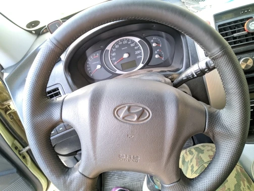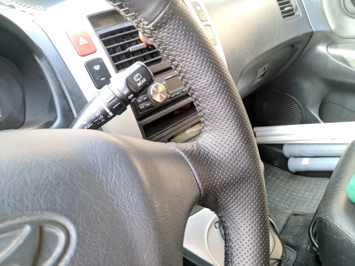 Сам чехол неплохой, нитки шедшие в комплекте ужасно слабые, чуть перетянешь рвутся в руках. С одного края кожа обрезанна не правильно. Чуть-чуть не хватило. Комплект поставки не полный, не было ножниц и ленты, пришлось искать и докупать. Из приятного висячка на зеркало. Посмотрим как в эксплуатации. Нити очень стремные.