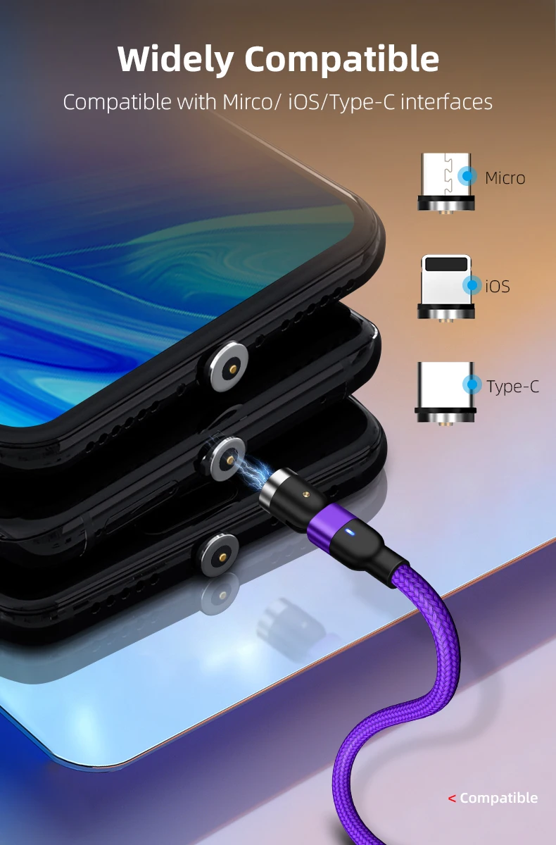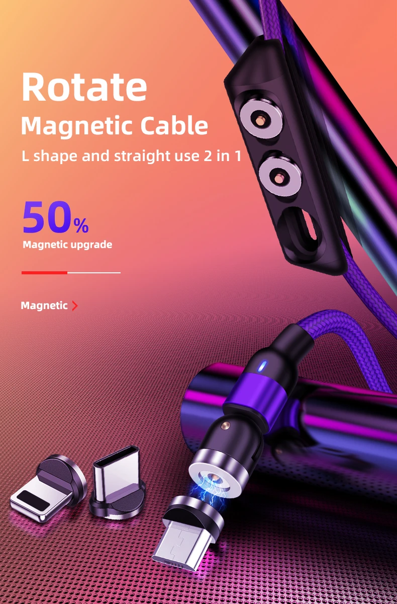SUNPHG частный режим вращения на 540 градусов Магнитный кабель Micro usb зарядный провод светодиодный USB C Type C кабель для ios Type c micro