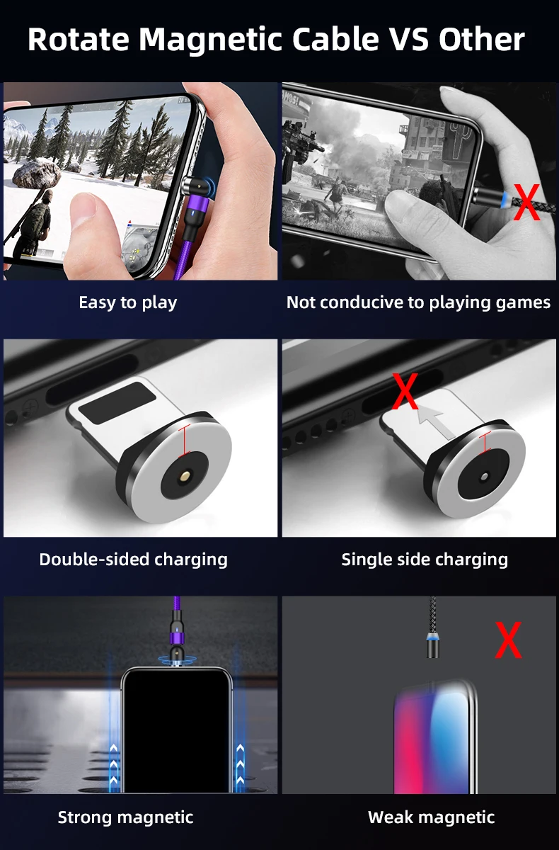 Описание продукта: Название: SUNPHG Магнитный usb СВЕТОДИОДНЫЙ светильник кабель для зарядки Материал: Луженая медь + алюминиевый сплав + нейлоновая оплетка Доступные цвета: черный, красный Длина линии: 1 м, 2 м • Сила тока: 2.1A; Voltige: 5,0 V/9,0 V Применимые интерфейсы: микроразъем для системы android, type-c, lightnin для iphone apple Совместимость с: Для i-products: для iphone xs, xs max, 3, 4,4s, 5, 5 plus, 5 se, 6, 6 plus, 7, 7 plus, 3gs и т. д. Устройства на базе Android: Для samsung galaxy note 9, note 3, s8, s8 plus, s9, s9 plus, s10 и т. д. Для xiaomi redmi note 4, 7, 5 a, mi9, mi mix 3, 6 x, redmi 4 и т. д. Особенности: 1, более функциональный и удобный, чем обычный кабель: Легко надевается одной рукой и не требуется помощник по зрению. Отличные варианты для водителей, детей, пожилых людей и людей с ограниченными возможностями зрения при зарядке и/или синхронизации данных-это обязательные и защитные устройства от износа. Идеально подходит для замены существующих зарядных кабелей, особенно в неудобных условиях доступа 2. Быстрая зарядка: (3 в 1) Для Наконечников i-product, обе стороны кабеля Для устройства USB C Android. Обе стороны поддерживают зарядку и синхронизацию, светодиодный светильник включается при включении. Для разъема Micro-USB одна сторона поддерживает быструю зарядку, а другая поддерживает зарядку и синхронизацию данных. Просто переверните боковую часть, чтобы соответствовать вашим потребностям. Внимание: Не используйте Магнитный кабель в среде, полной металлического мусора, металлический мусор будет привлекаться в соединитель и сделать короткое замыкание. Периодически мойте металлический мусор. Маленький наконечник изготовлен из магнитного материала, а не металла, Пожалуйста, избегайте падения его на твердые предметы