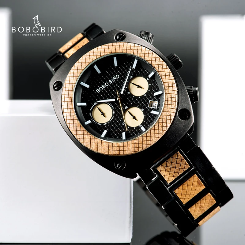 Деревянные часы BOBO BIRD, мужские секундомеры ручной работы, Мужские кварцевые наручные часы ручной работы, мужские часы, японские часы, Прямая поставка