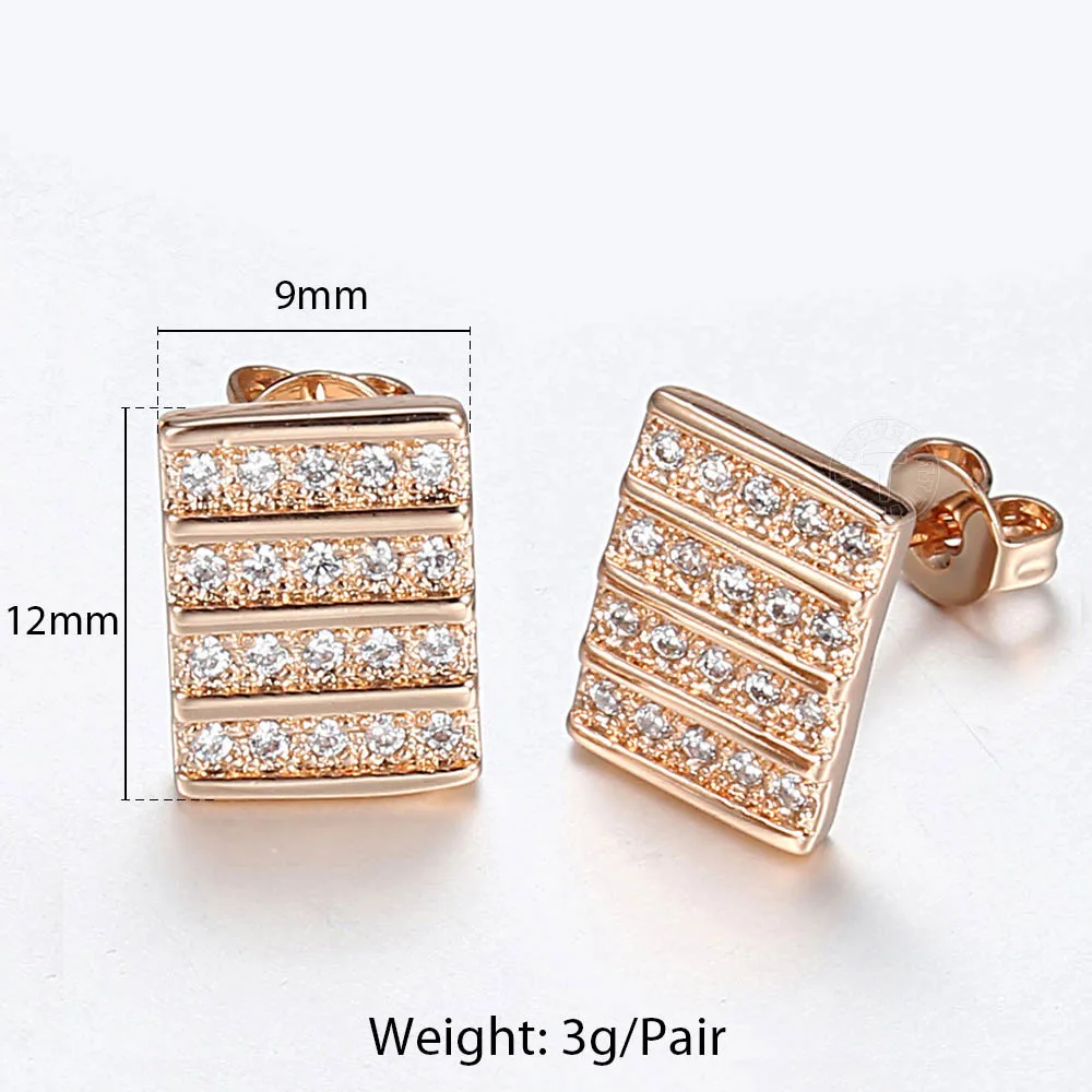 585 серьги из розового золота, полностью проложенные Стразы, циркон, CZ, квадратные серьги-гвоздики, Модные женские ювелирные изделия, подарок GE276