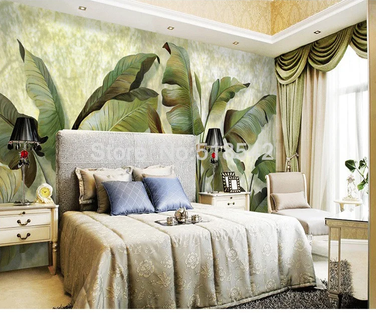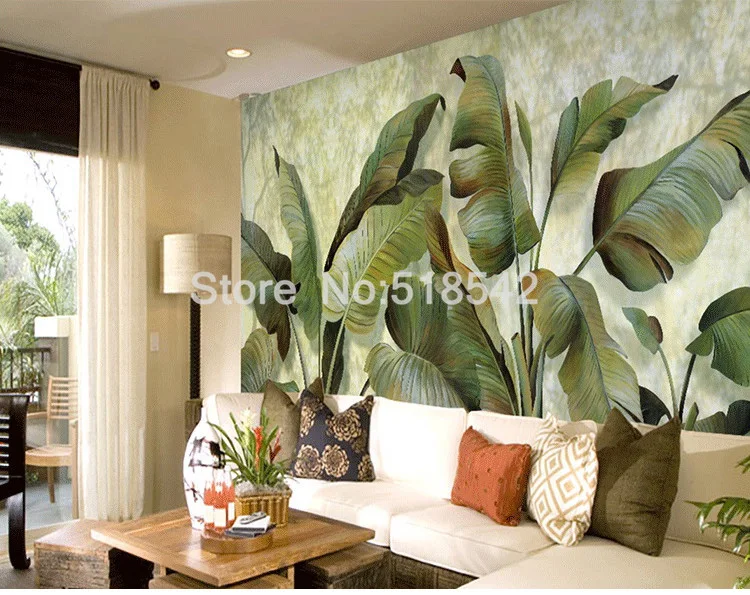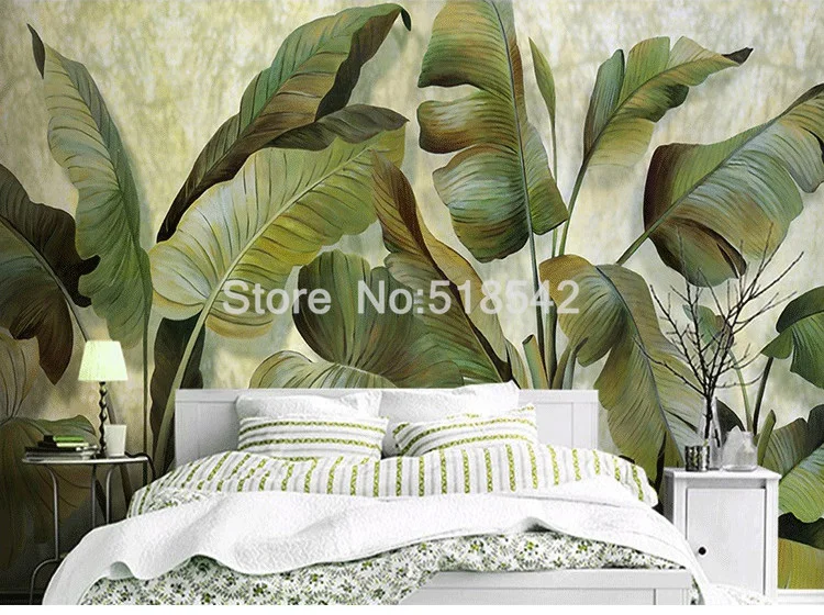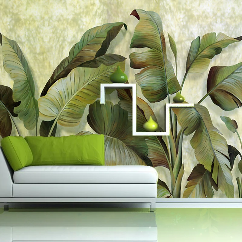 Пользовательские 3D Настенные обои ручная роспись банановый лист зе...