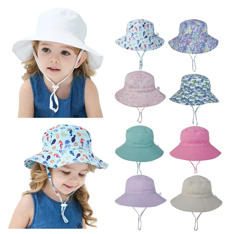 Шляпа от солнца летняя, для мальчиков и девочек, детское ведро, Шляпа Пляжная для путешествий, 16 цветов, весна-осень, ветрозащитный трос
