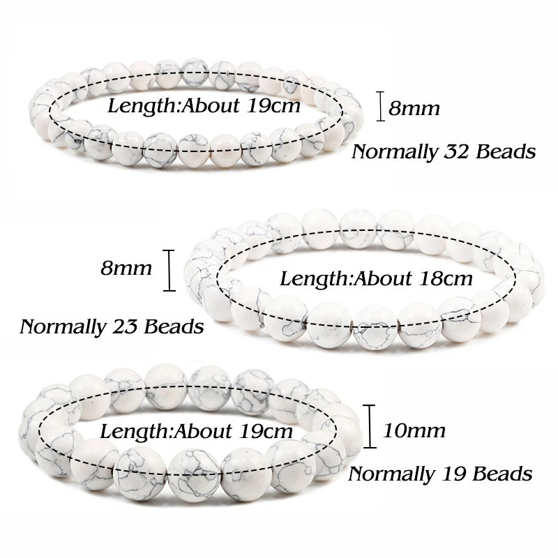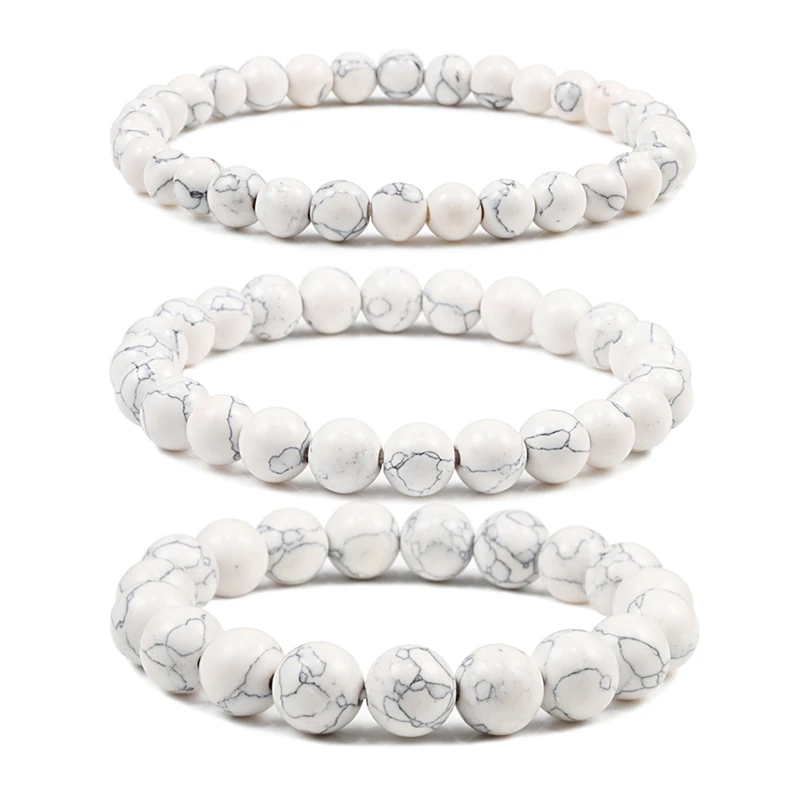 Браслет с подвесками 6 мм, 8 мм, 10 мм, из Белого Натурального Камня, простой эластичный браслет для медитации и молитвы, подарок другу