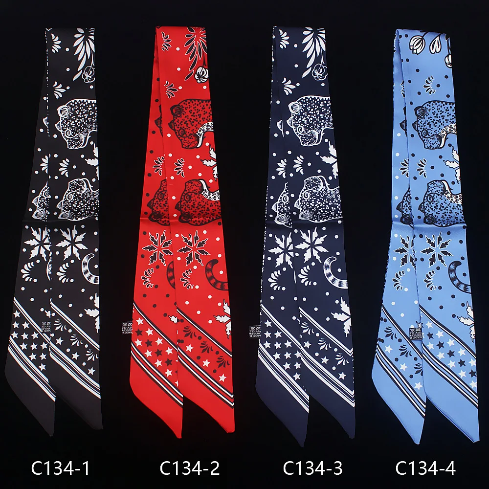 Женский шелковый шарф с леопардовым принтом, размеры 95 х5 см