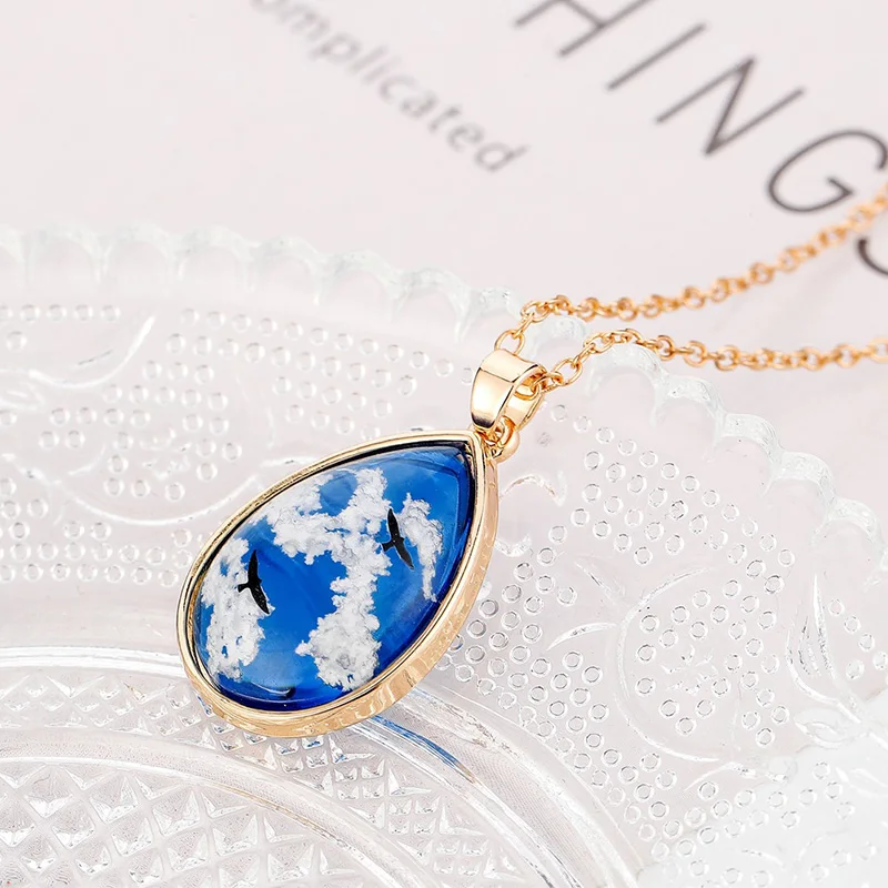 1 шт голубое небо белое облако цепь ожерелье Смола шар луна кулон о...