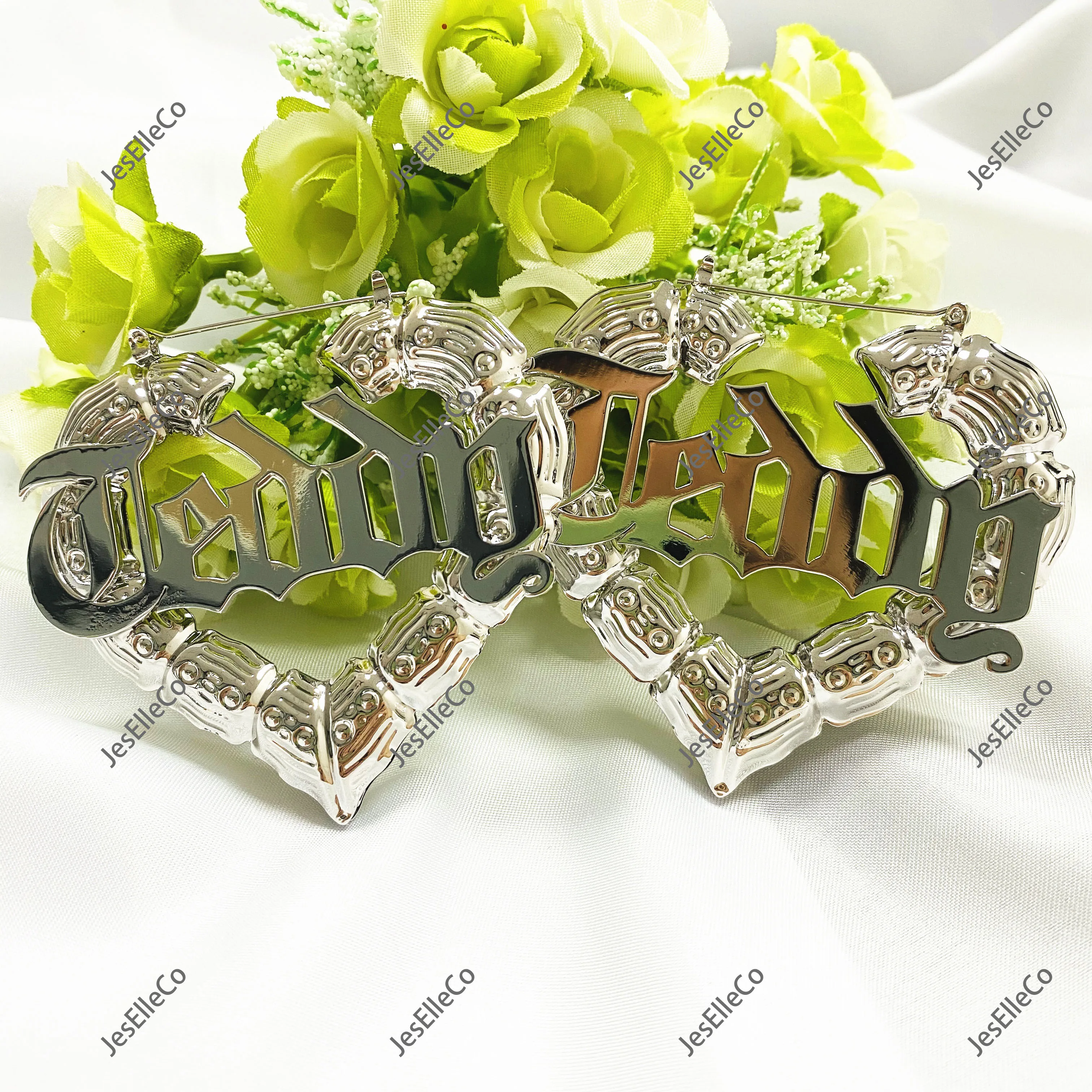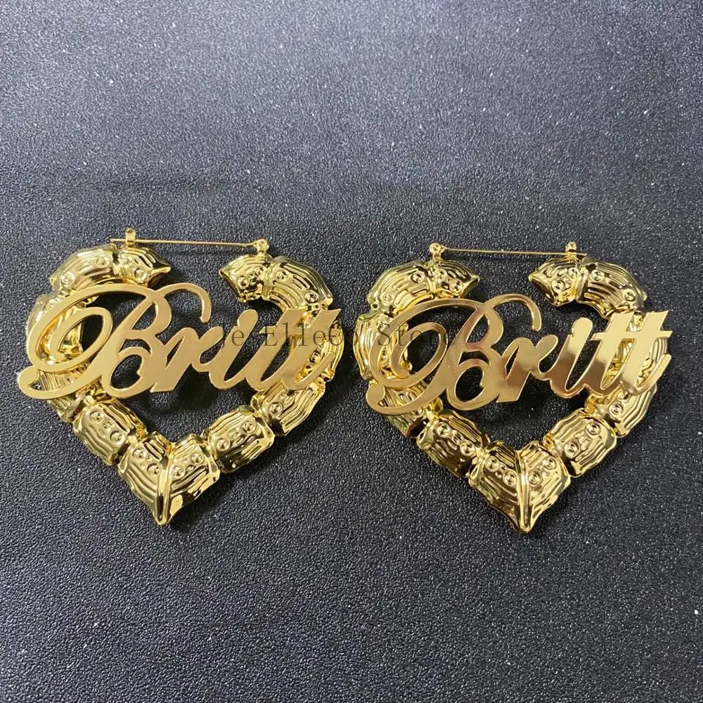 Бамбук Серьги-кольца настраиваемые серьги с именем на заказ в виде ...