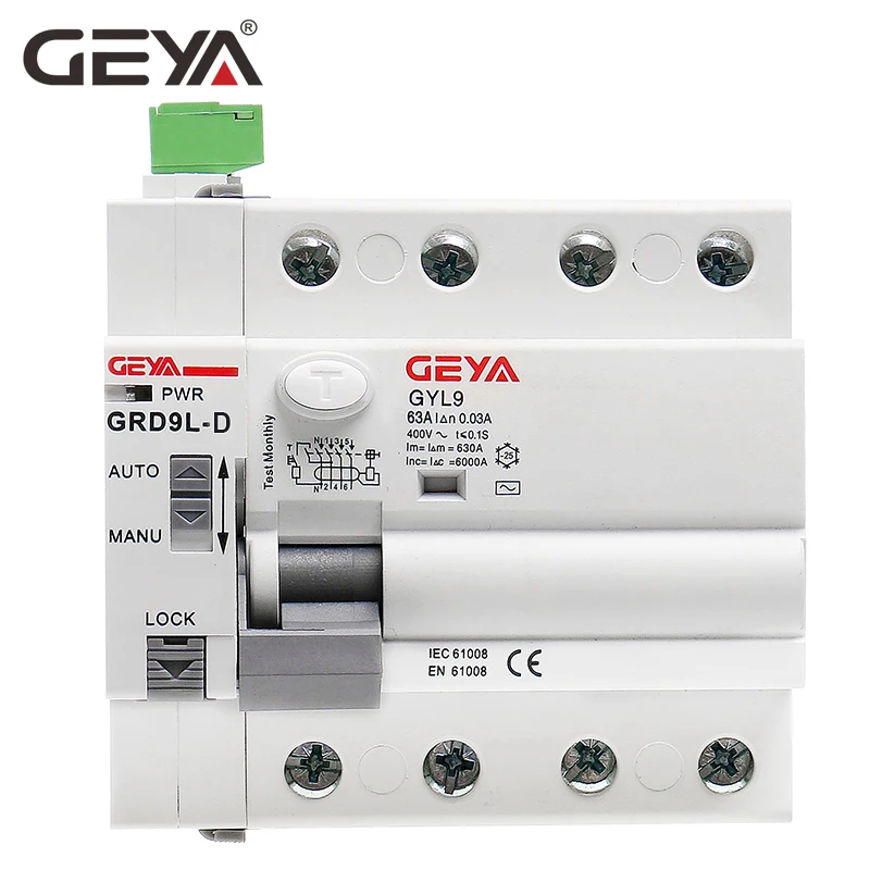 GEYA GRD9L-C или GRD9L-D выключатель с дистанционным управлением остаточного тока 4P 40A 63A 30mA 100mA 300mA RCCB ELCB RCD