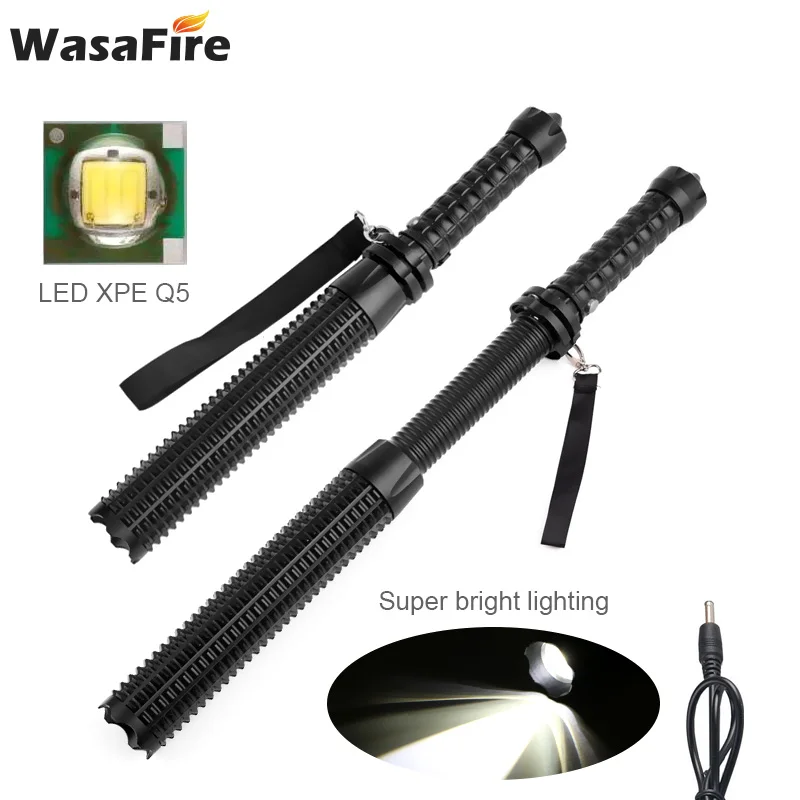 Фонарик для самообороны WasaFire, телескопическая дубинка Q5, перезаряжаемый тактический фонарь с аккумулятором 18650 + зарядное устройство для охоты