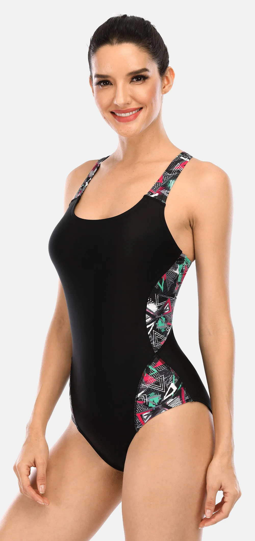 Купальник супер, соответствует описанию. размер подошёл даже на мою нестандартную фигуру 120-80-104. ткань плотная, швы аккуратные. цветные вставки яркие. товар шел в Беларусь около месяца. всем советую.