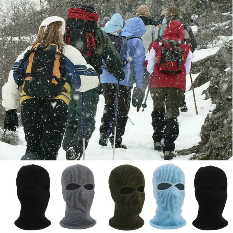 Полностью закрывающая лицо вязаная Лыжная маска с 2 отверстиями шапка Защитная облегающая шапка зимние теплые шапки