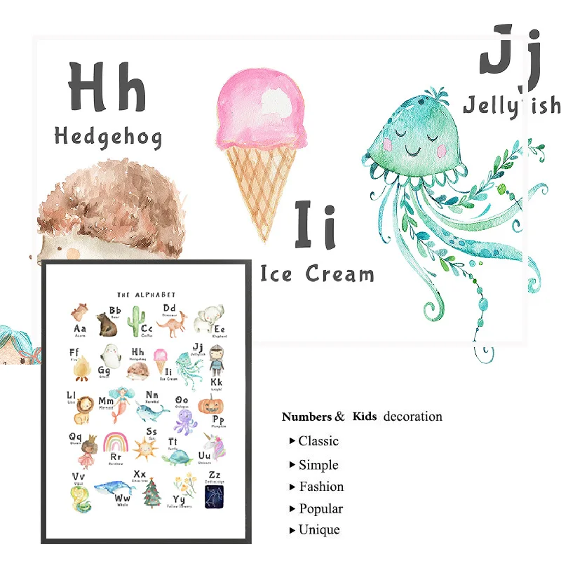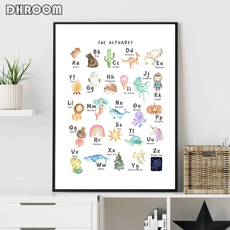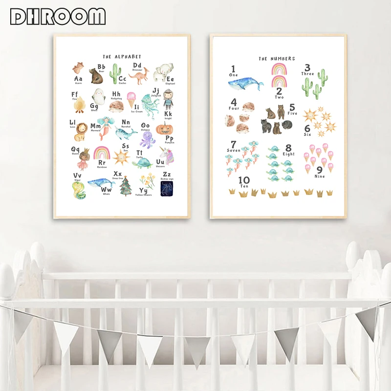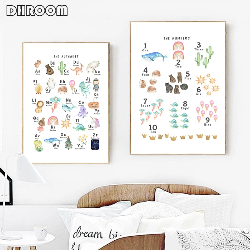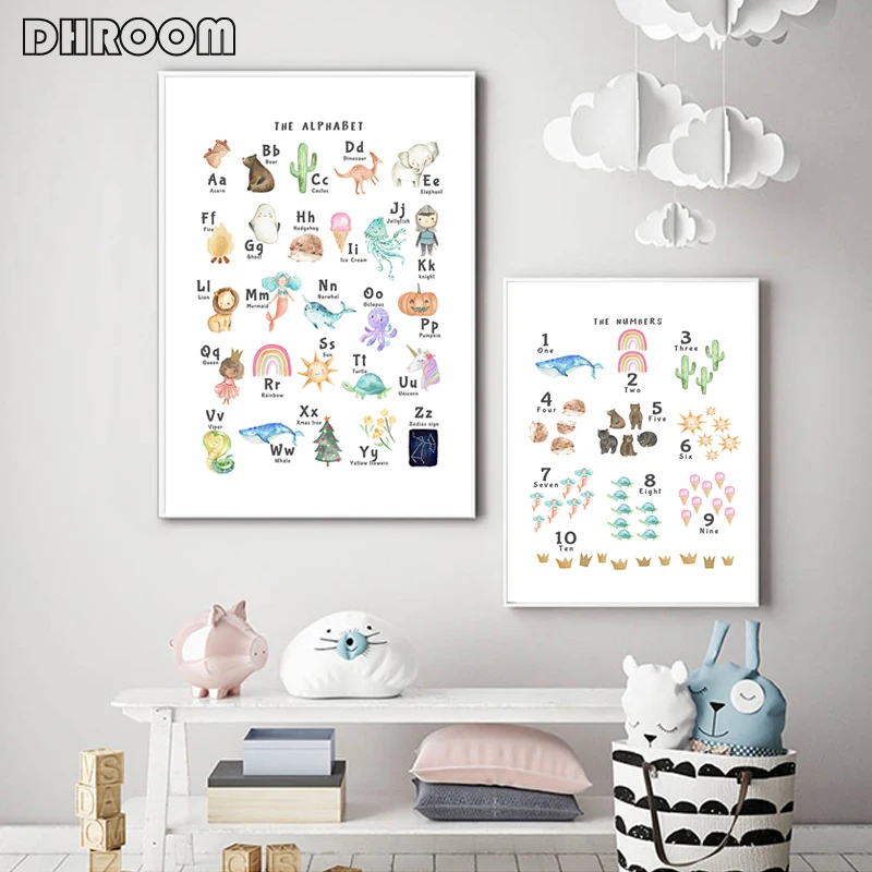 Цифры и плакат с алфавитом, большой алфавит, настенная живопись, холст, печать, картина для детской игровой комнаты, декор для детской комнаты