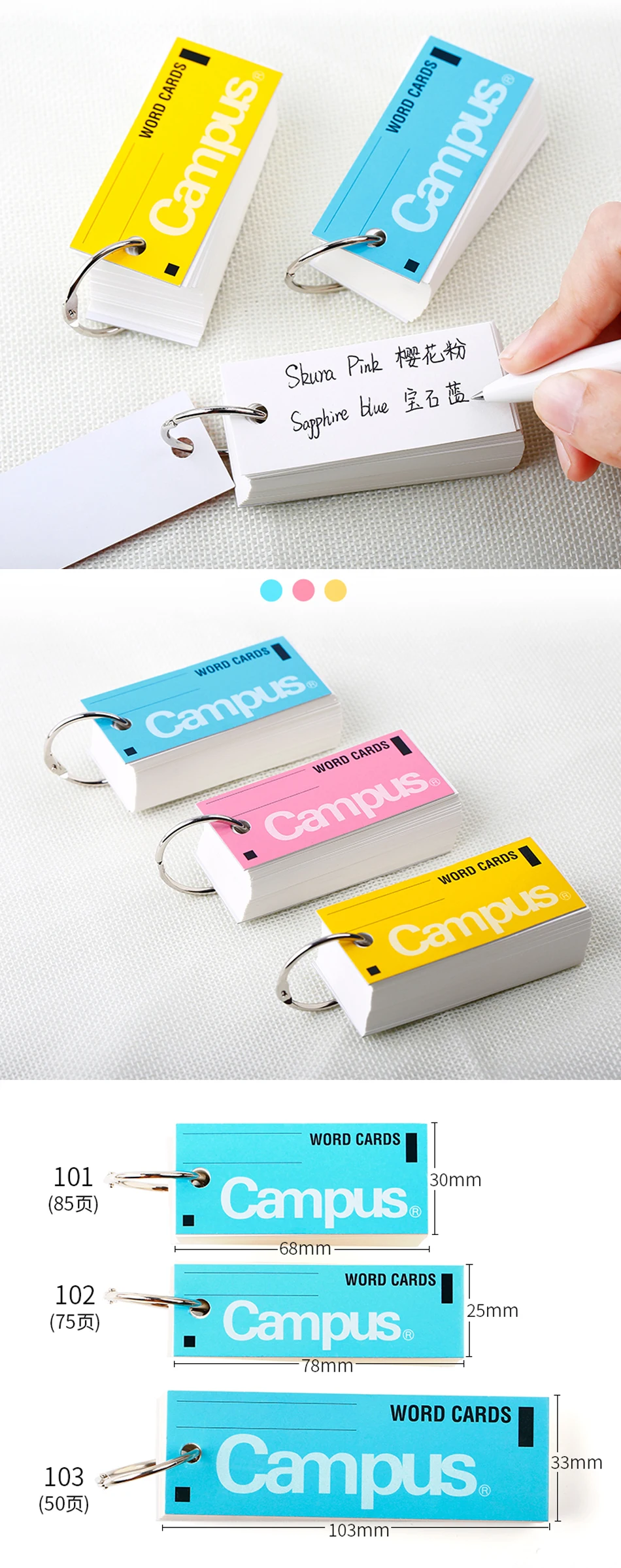 3 шт., портативный блокнот KOKUYO, слово, карта, кольцо, застежка, слово, память, книга, пустая ученическая Канцелярия, карманный блокнот