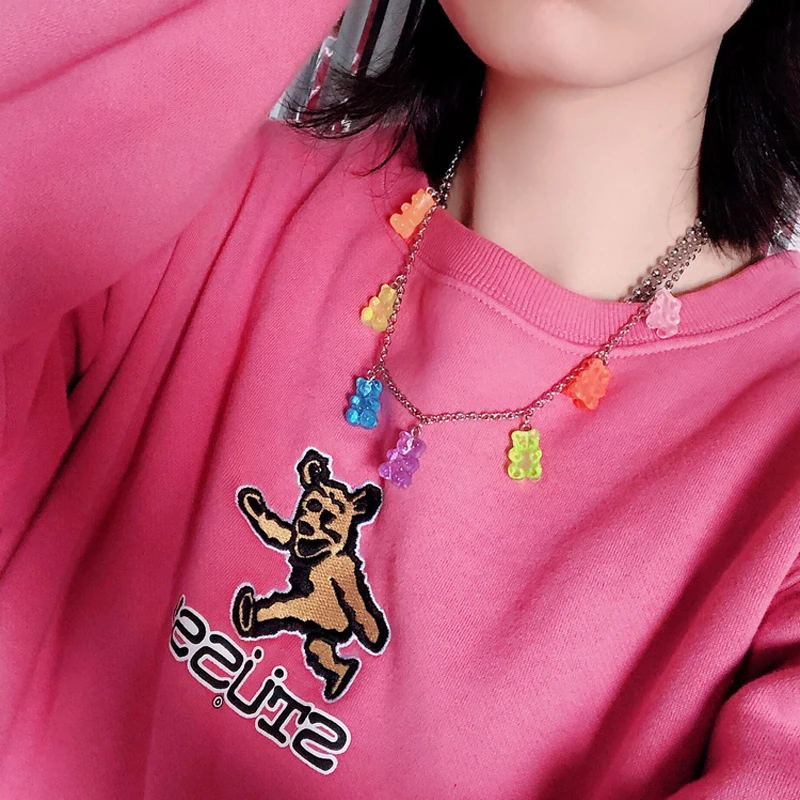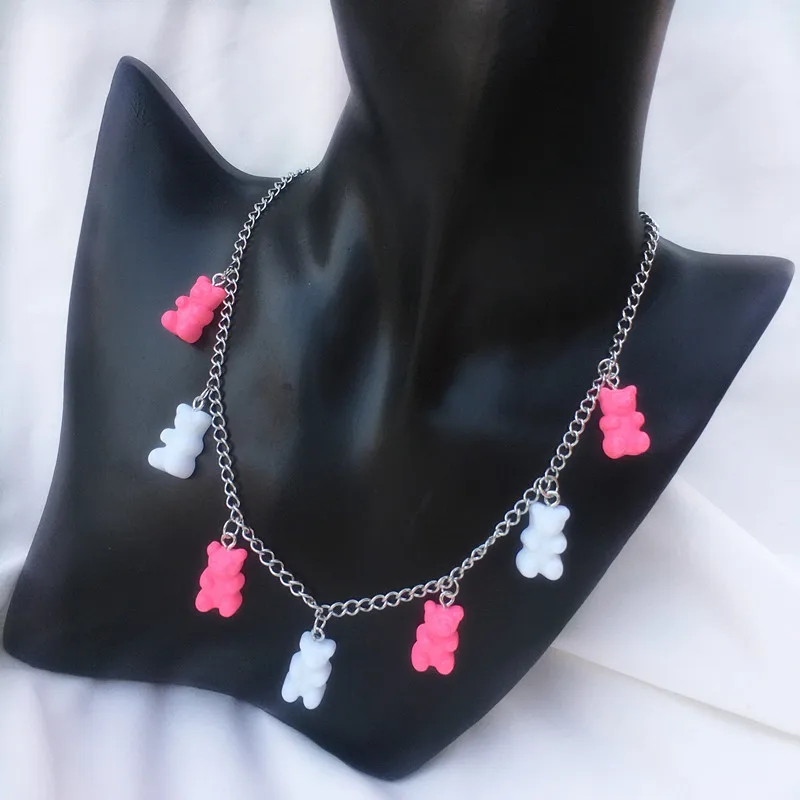 Ожерелье прозрачное блестящее милое с подвеской в виде медведя-желе для женщин и девочек, Крутое модное ожерелье с клейким медведем и животным, подарки, 7 цветов, 2020