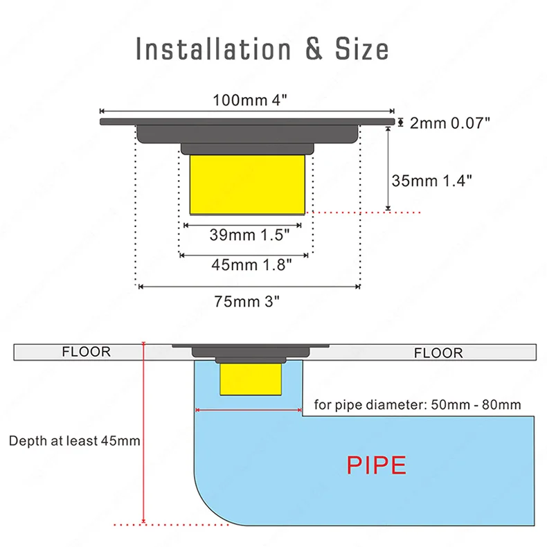 Решетка для отходов из нержавеющей стали, квадратный водосток для душа