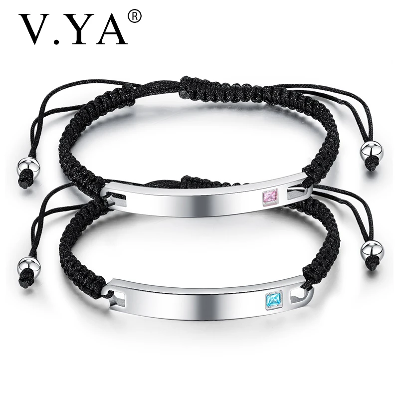 V.YA Простой браслет из нержавеющей стали для мужчин и женщин с гравировкой имени Браслеты Ювелирные изделия Подарки между влюбленными