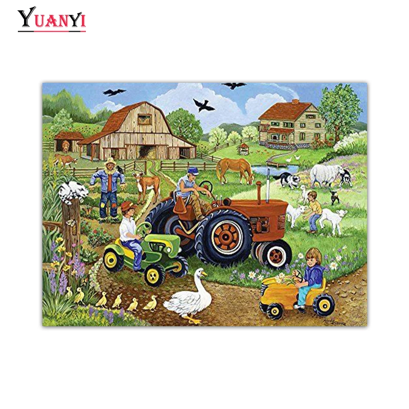 Полноформатнаякруглая Алмазная вышивка, трактор, автомобиль, животные, лошадь, 5D Алмазная мозаика, ферма, пейзаж, алмазная живопись, вышивка крестиком
