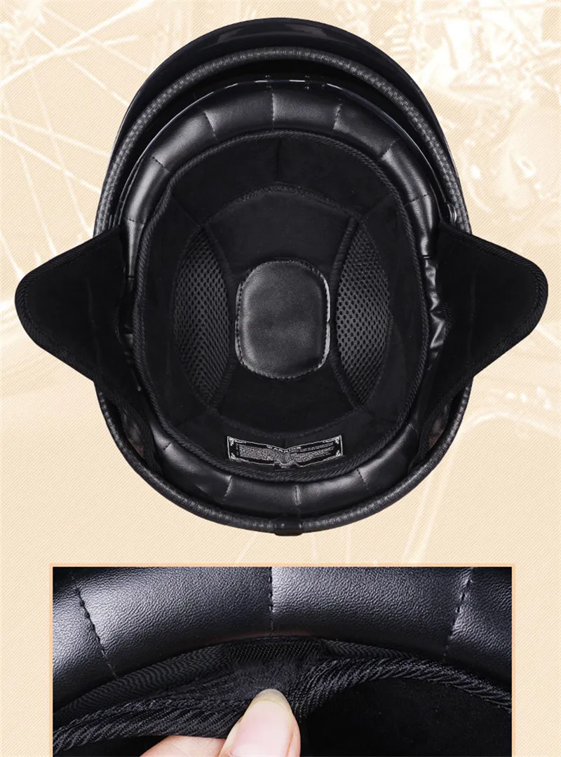 Мотоциклетный шлем Винтаж скутер Половина лица шлем Ретро Байкер Мо...
