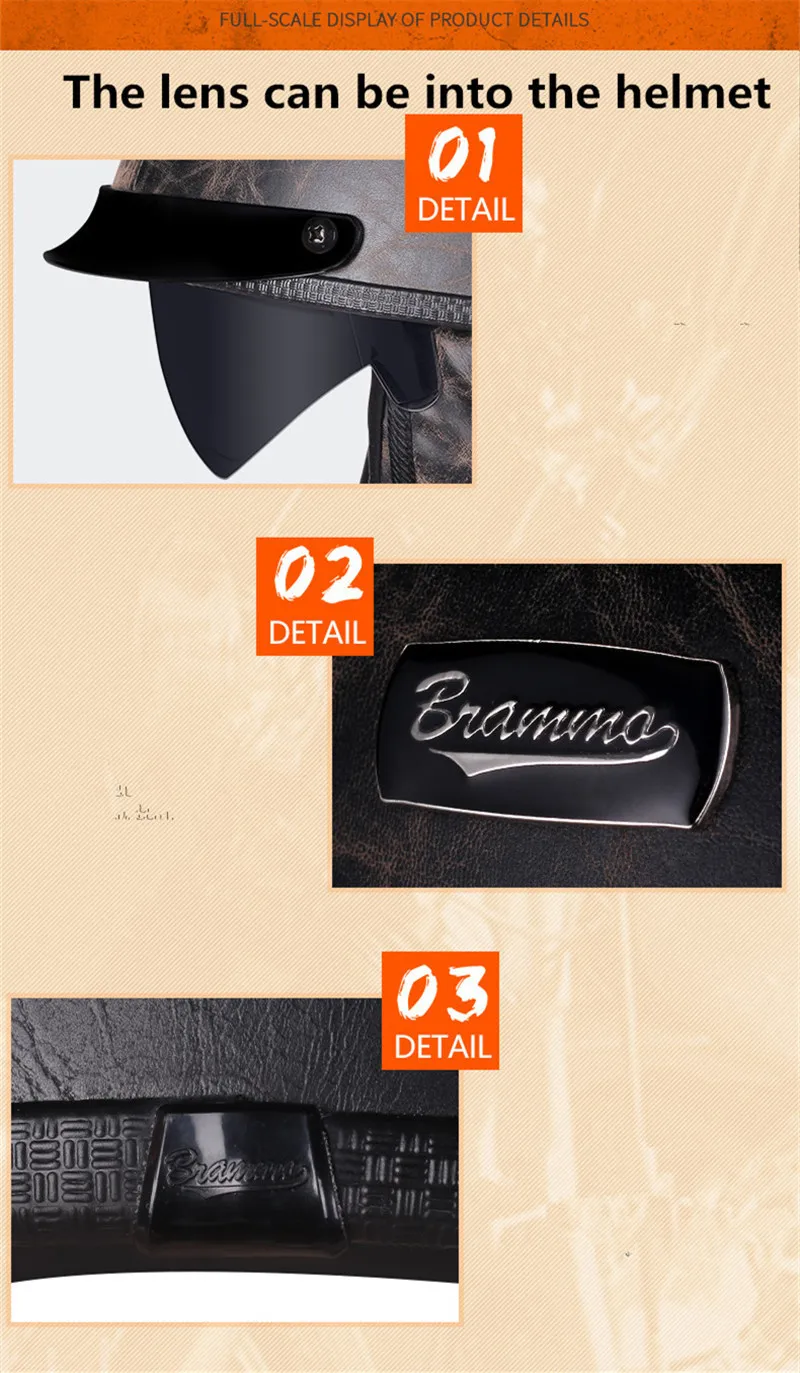 Шлем мотоциклетный из синтетической кожи, в стиле ретро