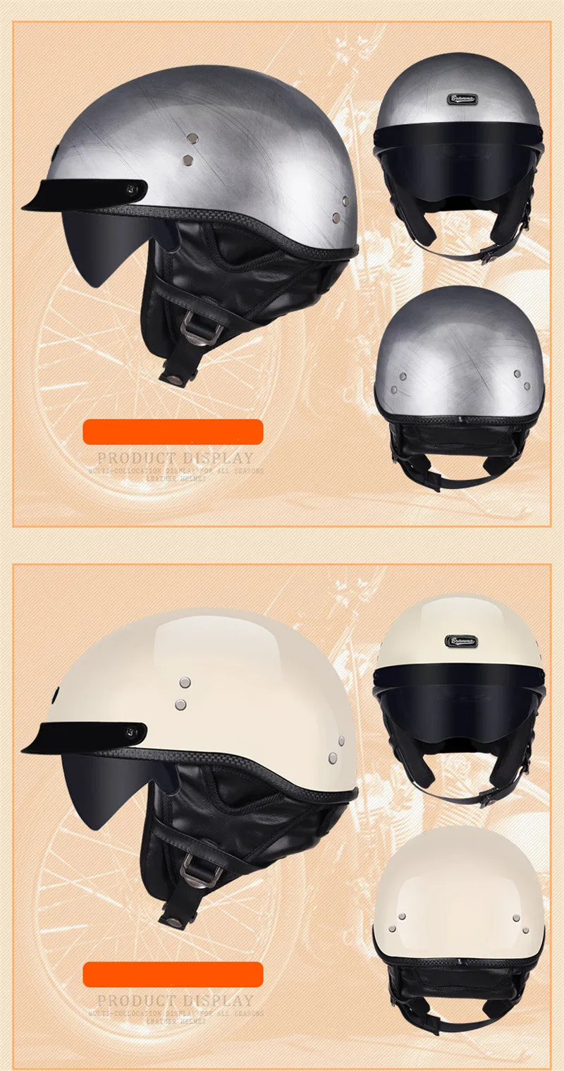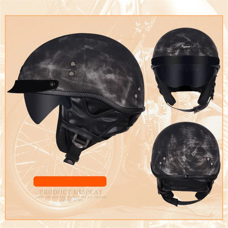 Новинка 2020, из искусственной кожи, ретро шлемы 34, мотоциклетный ...