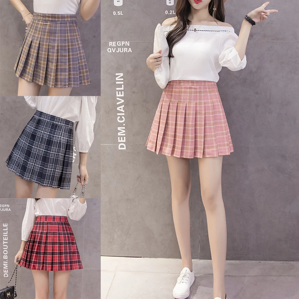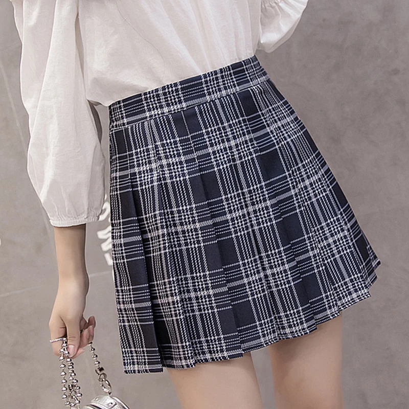 Короткая юбка в стиле Харадзюку, новая Корейская клетчатая юбка, женская школьная юбка на молнии с высокой талией, плиссированная клетчатая юбка, Сексуальная мини-юбка, женская