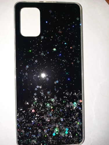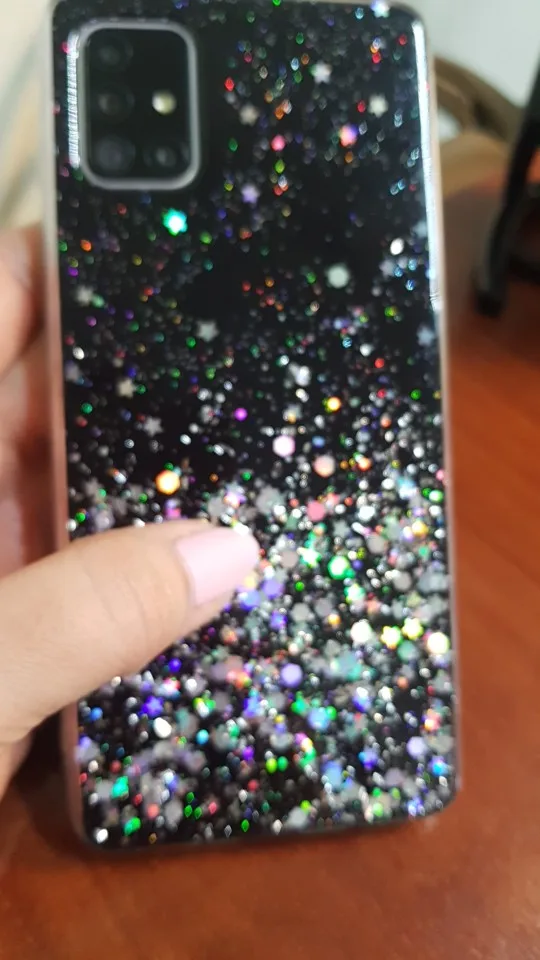 Мне казалось, что блестки в чехле должны были быть в жидкости и перемещаться по чехлу. оказалось, что блестки закреплены под пластиком, жидкости внутри нет никакой. Но вцелом чехол смотрится красиво, четко подходит по размеру на самсунг А51.