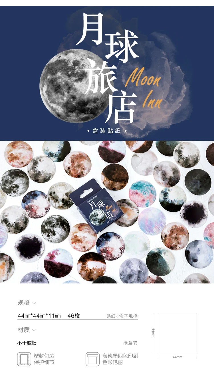 Набор наклеек из серии Moon Inn, 46 шт., 44 мм, мини-наклейки с пла...