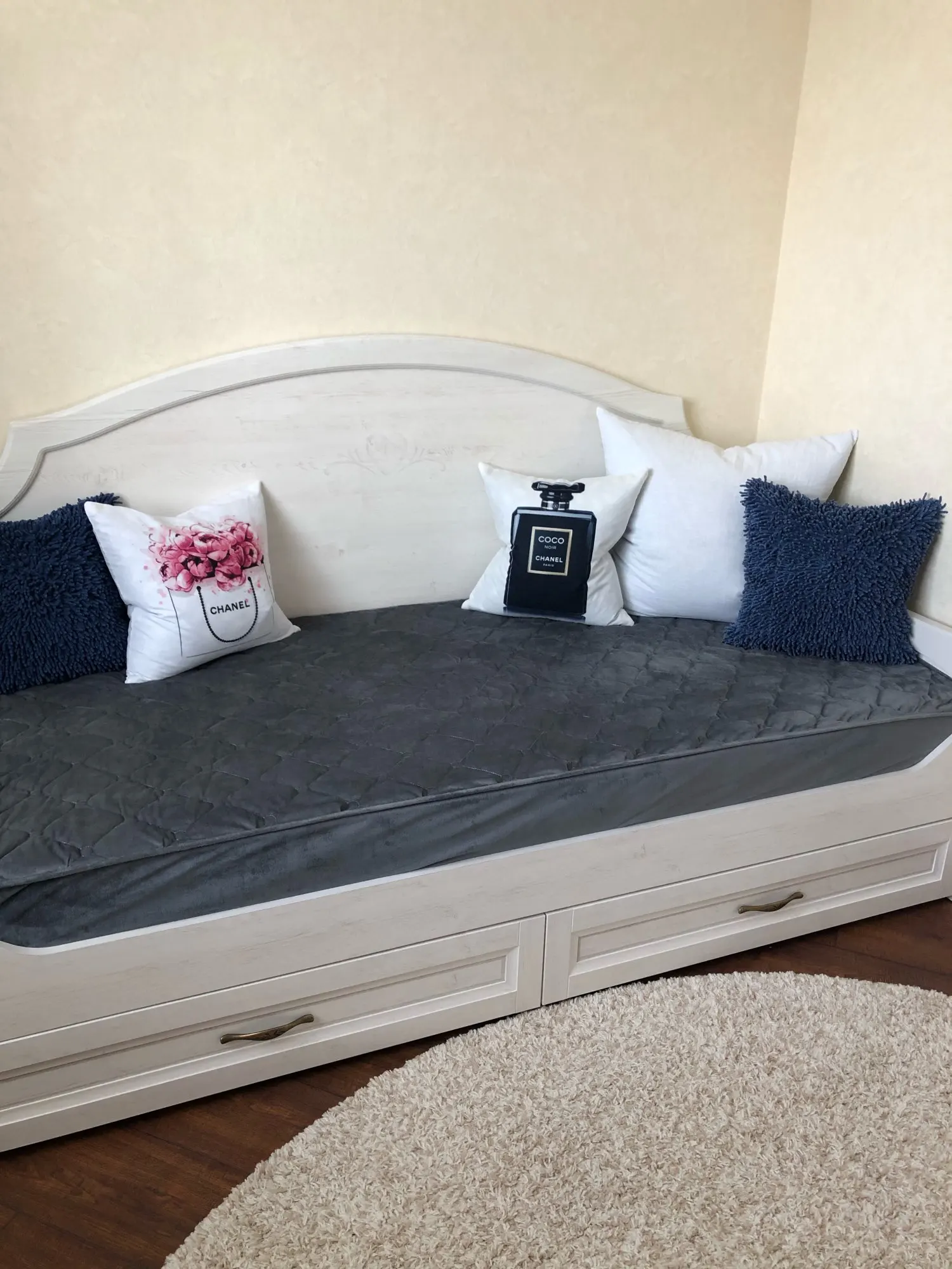 Только забрала заказ, натянула и сразу пишу отзыв. Влез как литой. Мягкий, без пятен, пришёл ну очень быстро, вообще не ожидала такой скорости. Спим на полу на матрасах(на диване спина болит), все равно все эти швы от матрасов вид портят, синтетическая обивка тоже неприятна, покрывало тоже не полностью покрывает и прям неаккуратность видна. С таким наматрасником прям другой вид, как будто полноценная кровать теперь. Подбирала цвет близкий к пледу сверху-получилось уютно. Цвет больше кораллово-розовый, не слишком яркий и не тусклый. Хороший оттенок. Теперь закажу и на второй матрас !!!!