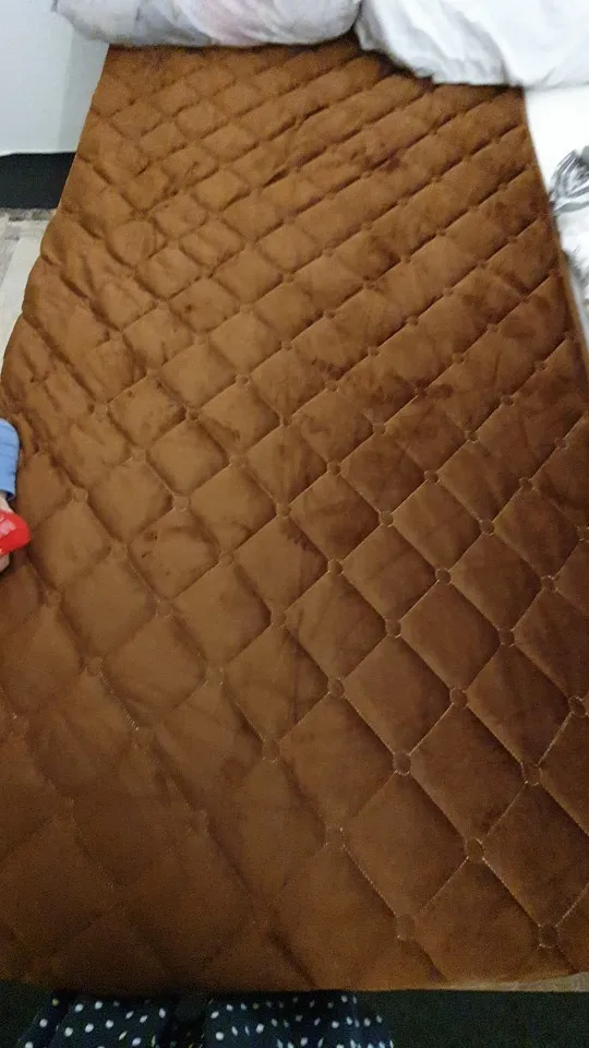 Доставка полтора месяца до Москвы. Очень красиво смотрится. Бархатная, приятная поверхность. Кошек не согнать! Не промокает насквозь, но воду впитывает моментально. Размер соответствует и даже удобно заворачивается под матрац.