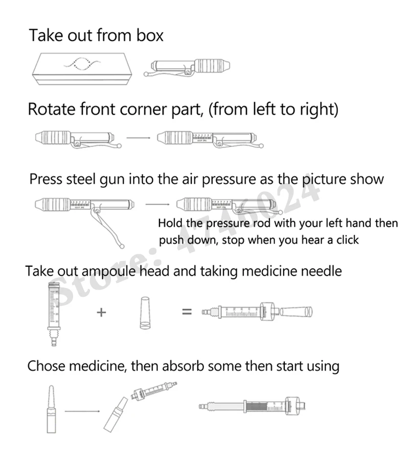 Описание товара: Тип 1: гиалуроновая ручка Особенности: заполнение губ, удаление кровеносных сосудов, омоложение кожи, темные круги, средство для удаления морщин, потеря веса, увлажняющий крем, отбеливание, увлажняющий крем Материал: нержавеющая сталь 316 (Профессиональная Медицинская нержавеющая сталь) Объем впрыска: 0,3-0,5 мл Режим работы: распыление под высоким давлением Глубина впрыска: 4-6 мм Принцип работы: Пружина и поршень, которые позволяют быстро и равномерно вводить наркотики под кожу под давлением через отверстие диаметром 0,1 мм, которое в два раза меньше толщины иглы для инъекций! С помощью энергии механического действия пружина и специальный поршень в аппарате позволяют, под давлением, быстро, но мягко проталкивать поток препарата через Микроскопическое отверстие в подкожную ткань. Препараты поглощаются гораздо лучше и быстрее, чем с введением иглы, что было подтверждено в серии исследований и тестов, проведенных в разных странах мира. Идеальное решение для склонных к рубцам и подкожным сгусткам. Преимущества гиалуроновой ручки: * Безболезненная инъекция * Инъекция без иглы исключает риск заражения иглой * Иглой не оставляет следов от проколов на ткани кожи * Лучшее и быстрое впитывание лекарств * Строго Подкожная инъекция-устраняет риск проникновения препарата в мышцы * Быстро, легко и безопасно * Раздельное и экономичное дозирование препарата