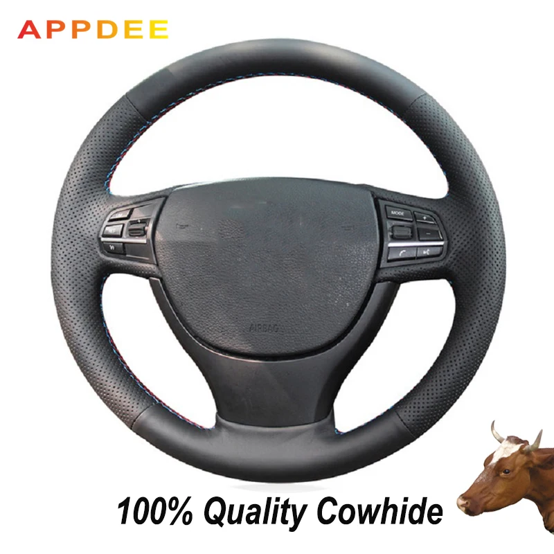 Рука сшитый черный кожаный чехол на руль для BMW F10 F07 (GT) 2009 10-2011 2012 2013 2014 2015 2016 2017 F11