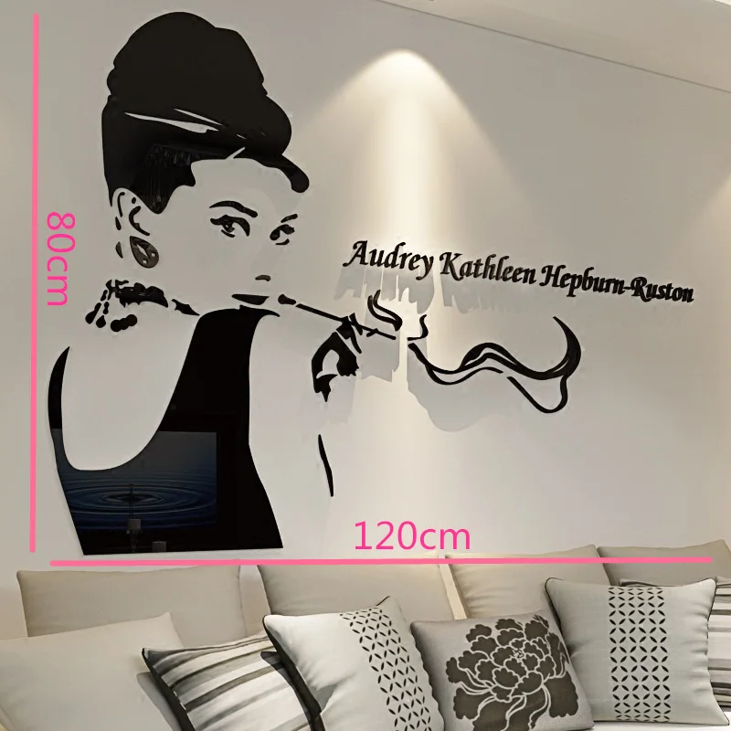 Наклейка на стену Hepburn s, красивый постер Одри, украшение для гостиной, спальни, зеркальные наклейки сделай сам