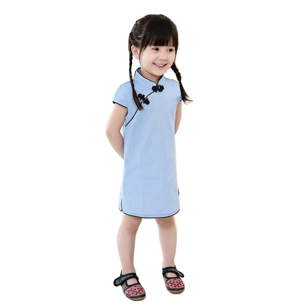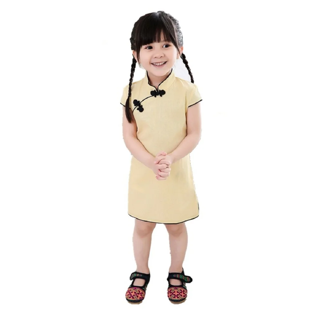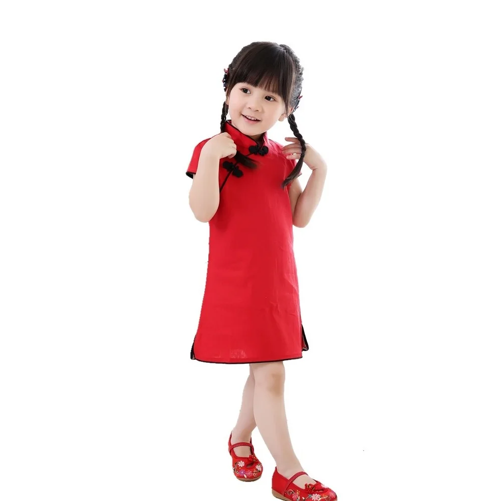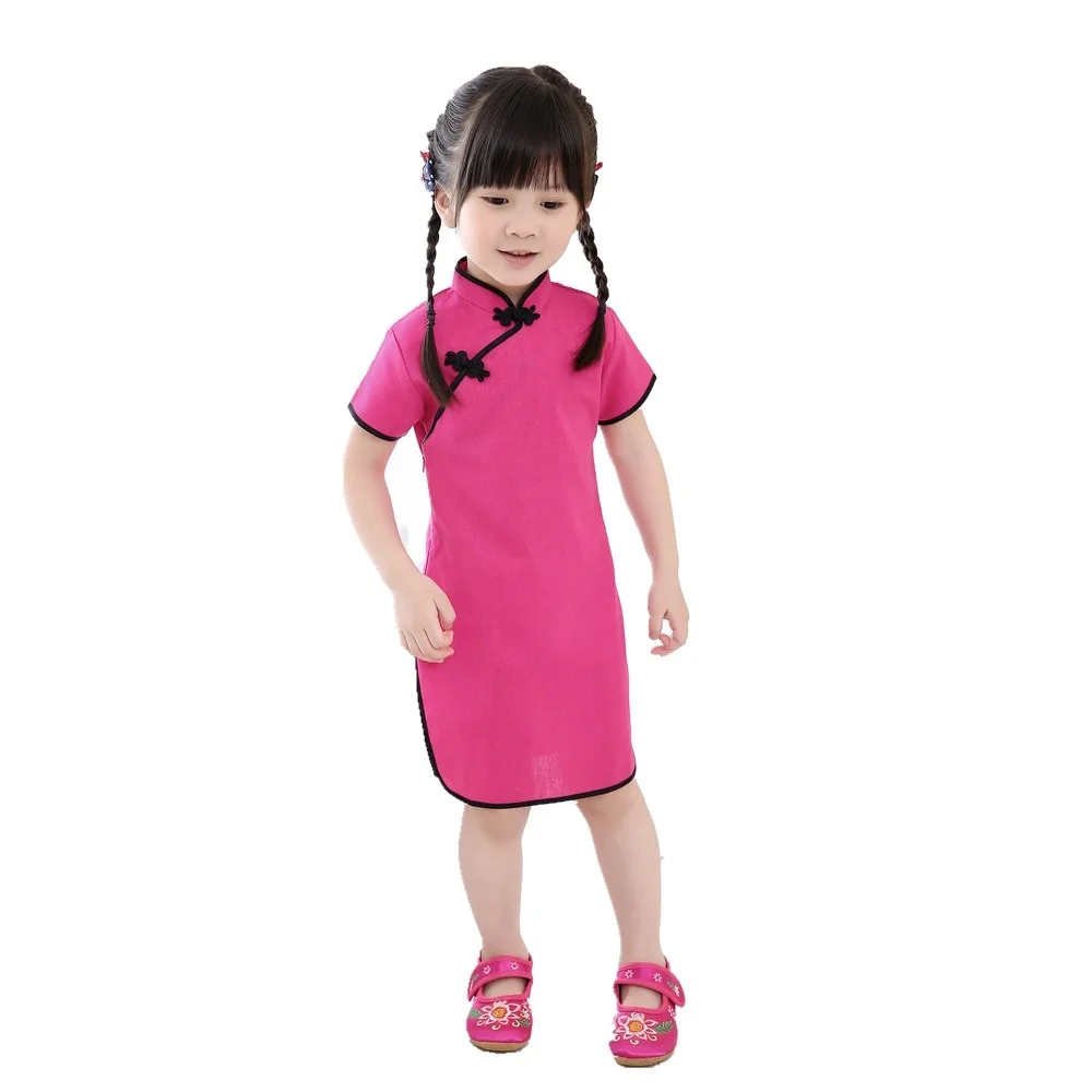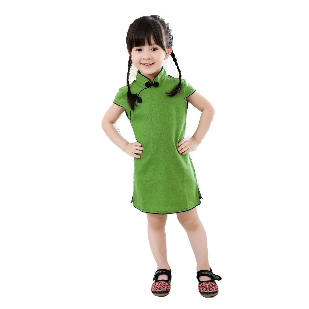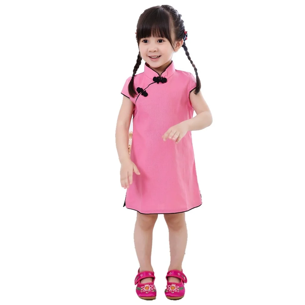Хлопковое детское китайское платье чонсам, праздничная одежда для маленьких девочек, летние традиционные платья Ципао-Ципао