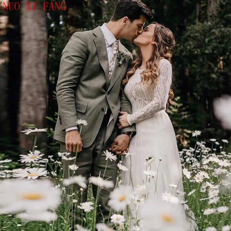 Пляжное свадебное платье с длинными рукавами 2020 Vestido de noiva Винтажный кружевной топ шифоновая юбка свадебное платье в стиле бохо свадебное платье