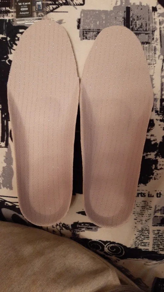 как на фото, пришли быстро, подрезала,. засунула в кросовки, долго не ходила, не могу сказать как по ощущениям. продавец положил стельки для пяток от натирания