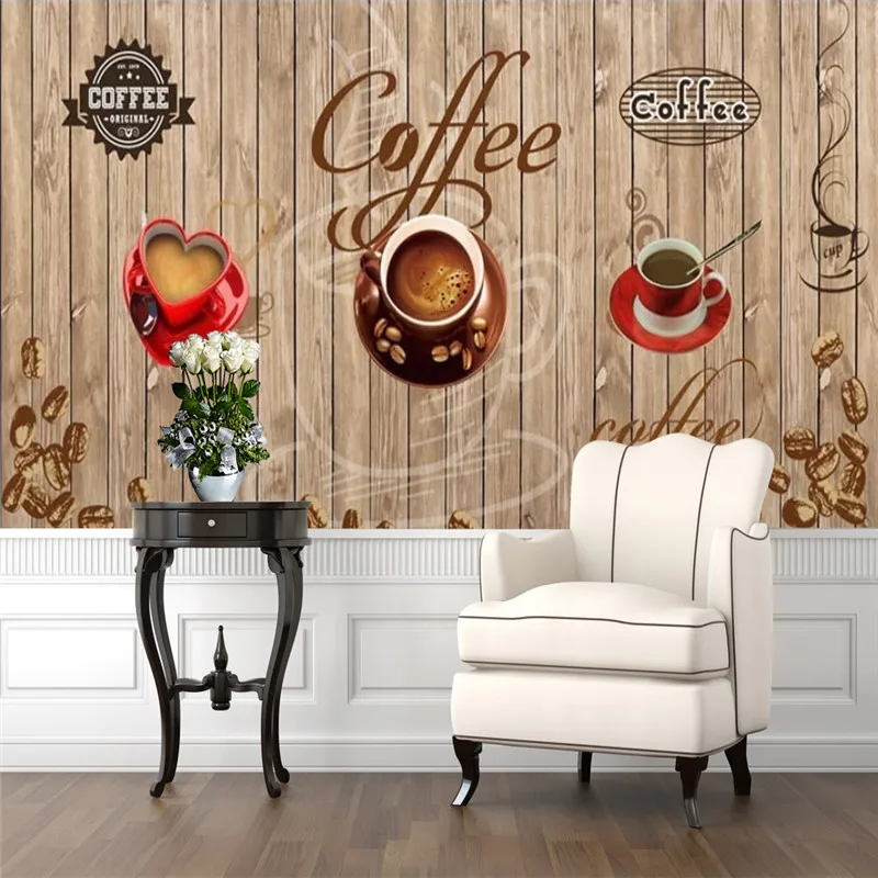 Европа и Америка 3D буквы кофейная чашка коричневая деревянная доска фон обои Кофейня промышленный Декор настенная бумага 3D