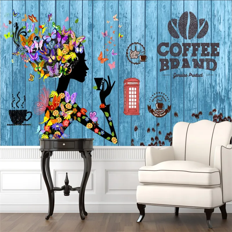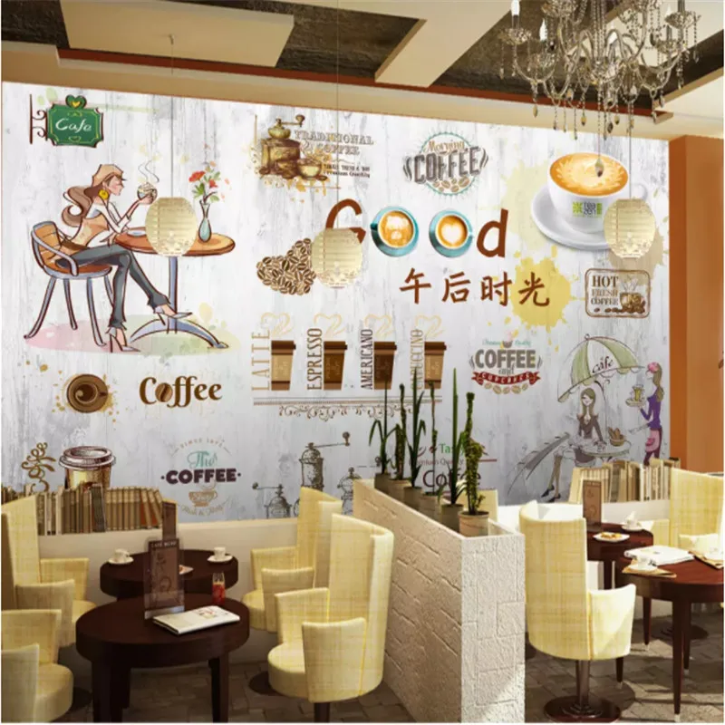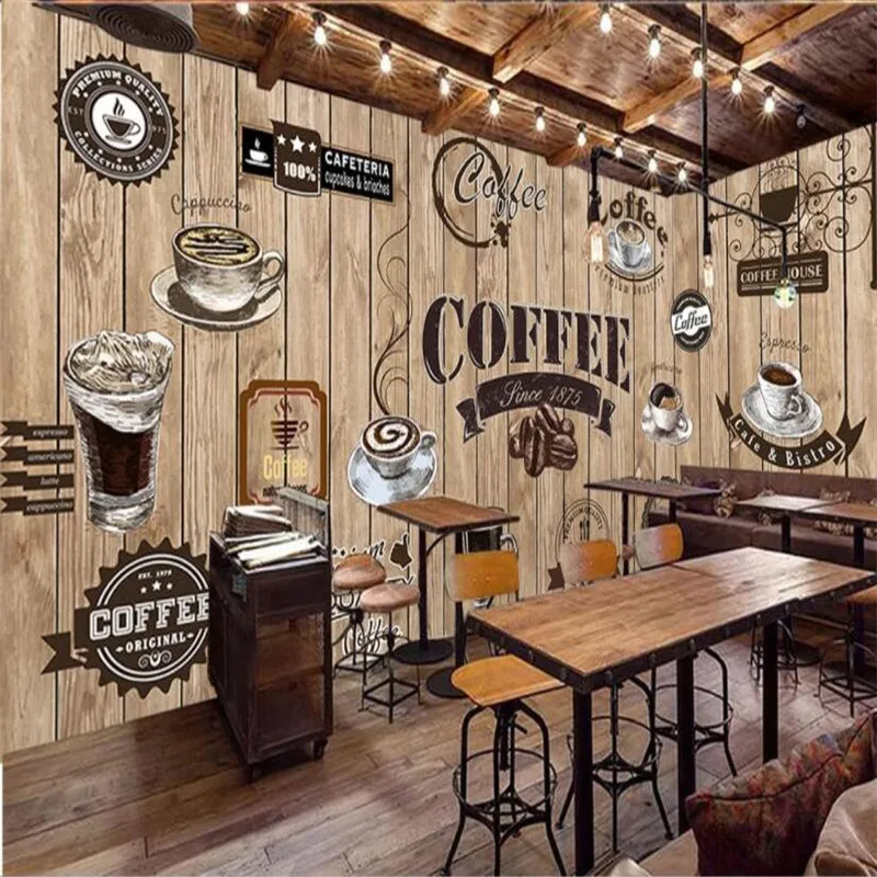 Европейский и американский ретро ручная роспись Кофейня деревянная доска фон росписи обоев 3D Повседневные ресторанные обои 3D