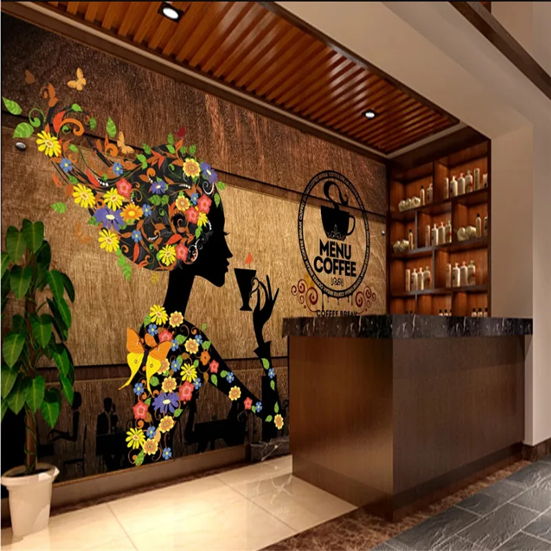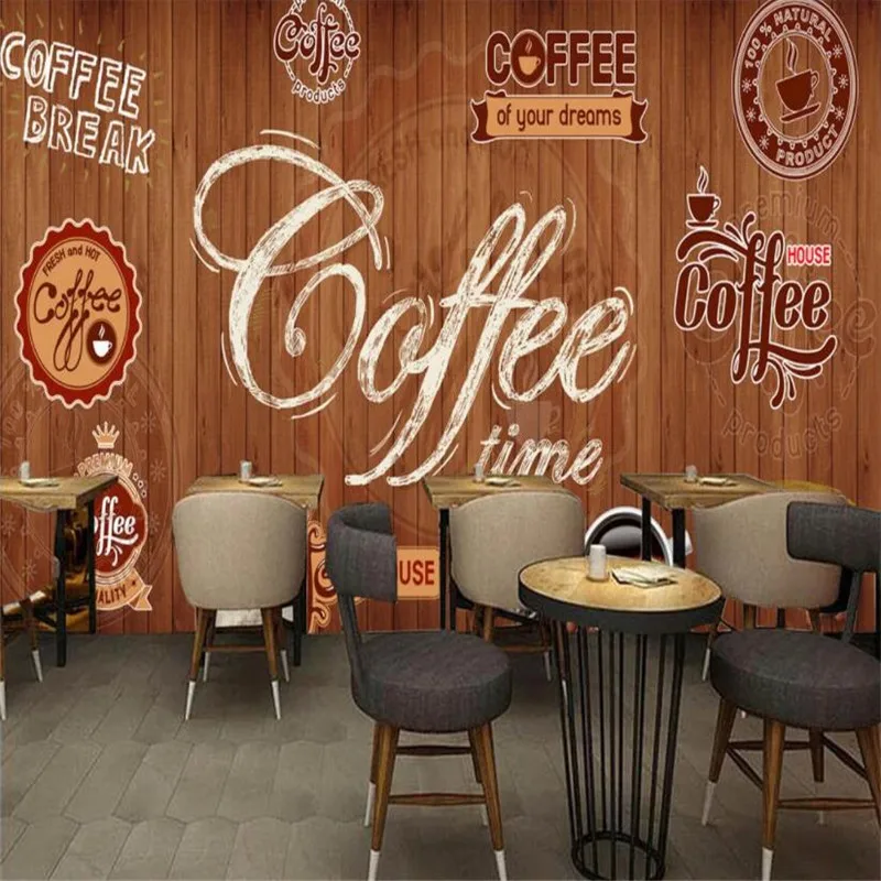 Пользовательские Meal & Coffee Beauty Ретро коричневая деревянная доска фон настенная бумага кафе Кофейня промышленный Декор Настенные обои 3D