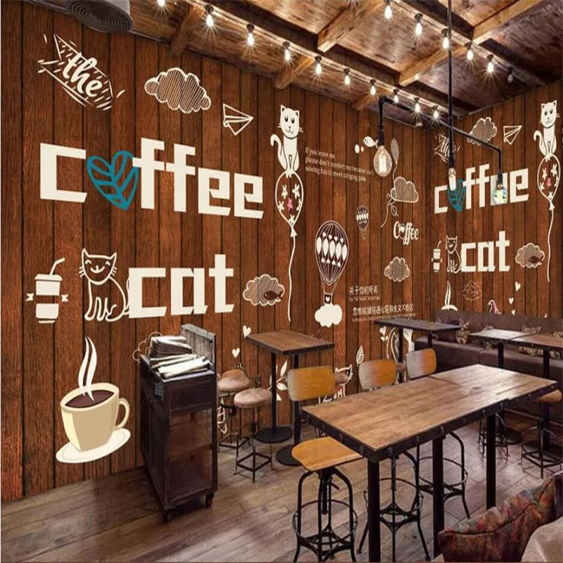 Европейский и американский Ретро Кот тема Кофейня деревянная доска фон обои росписи 3D кафе промышленный Декор настенная бумага 3D