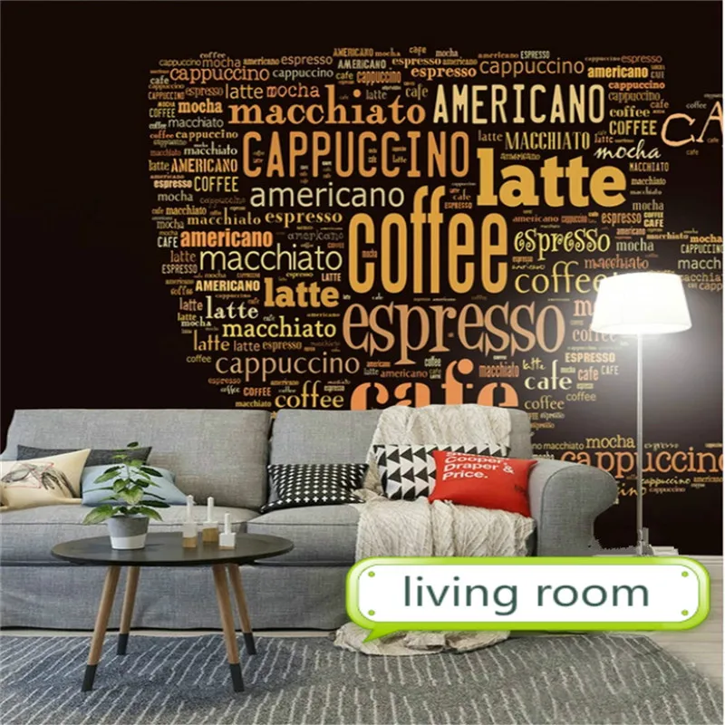 Европейская креативная кофейная тема буквы кофейная чашка фон настенная бумага 3D Кофейня кафе ресторан тема Настенные обои 3D