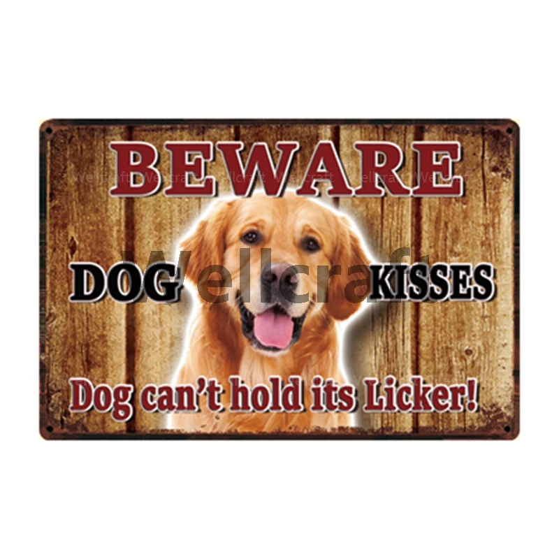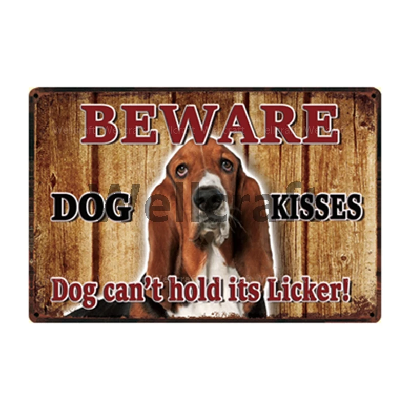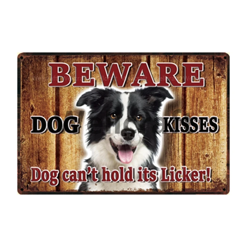 WellCraft Остерегайтесь поцелуев собаки, граница Бигля, колли, металлический знак, жестяной плакат, домашний декор, Настенная картина 20*30 см Sizer L9