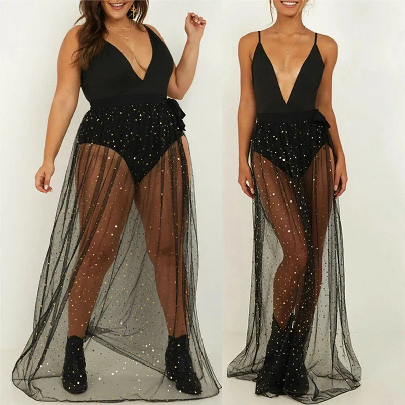 Сексуальное черное Сетчатое прозрачное Прозрачное платье бикини, накидка для женщин, высокая эластичная талия, макси, юбка с запахом, саронг, парео, пляжная одежда