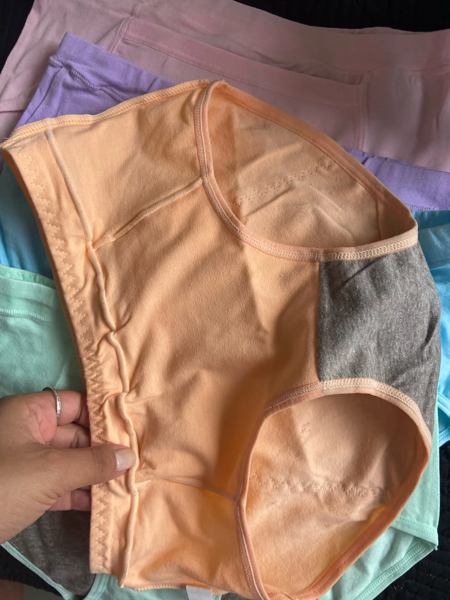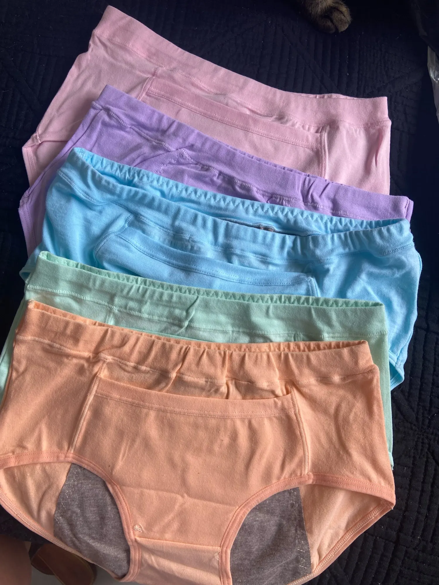Защищенная часть должна начать путь, прежде чем она это сделает. Это начинается в середине, поэтому нижнее белье окрашивается и может испачкать вашу одежду. Они идеально подходят для моего тела. Как обычное нижнее белье для нормальной жидкости, они хороши и удобны, но не работают в качестве периода нижнего белья.