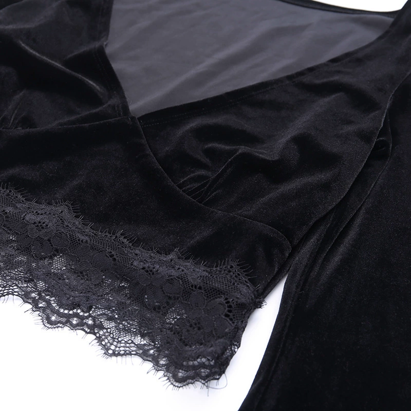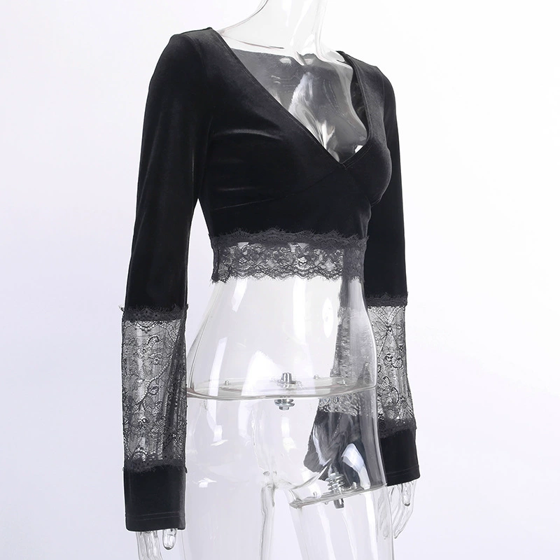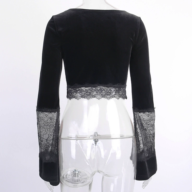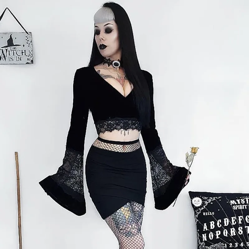 Футболка женская винтажная в стиле гранж, Готическая рубашка в стиле Харадзюку, с расклешенными рукавами, укороченная сетчатая рубашка для Хэллоуина, черная, на осень