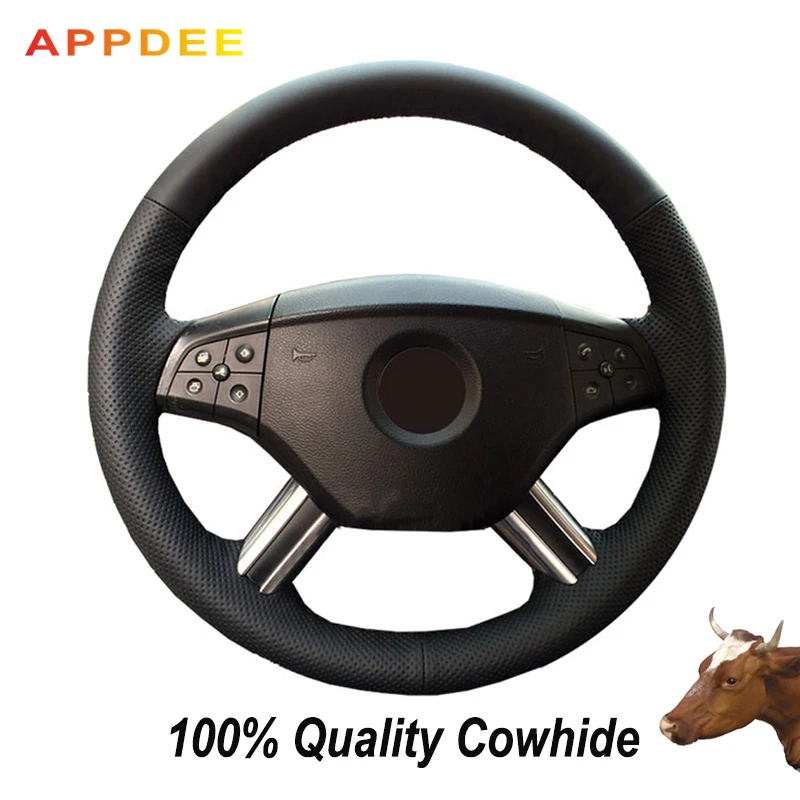 Сшитый вручную черный чехол на руль из натуральной кожи для Mercedes-Benz W164 M-Class ML350 ML500 2005 2006 X164 GL-Class GL