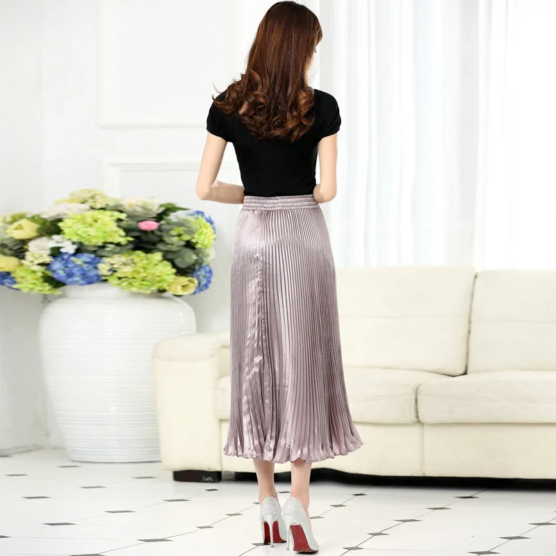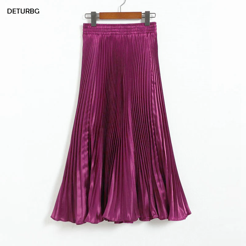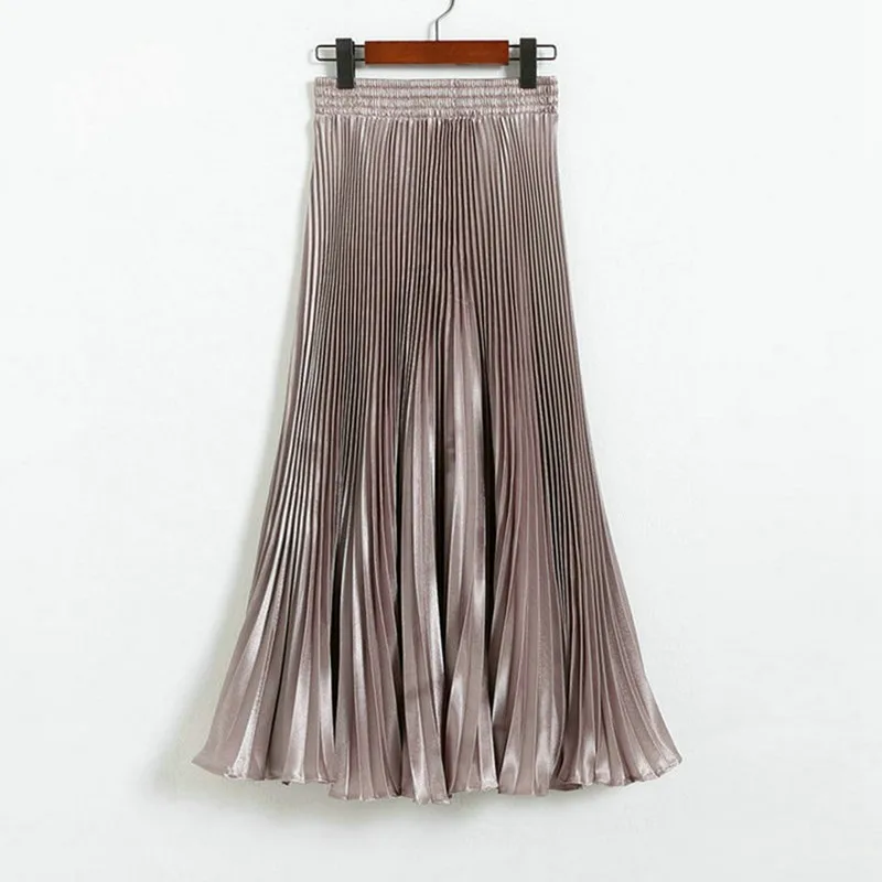 Юбка женская плиссированная атласная средней длины, Повседневная блестящая длинная юбка-русалка в японском стиле, с завышенной талией, 17 цветов, SK501, весна 2020