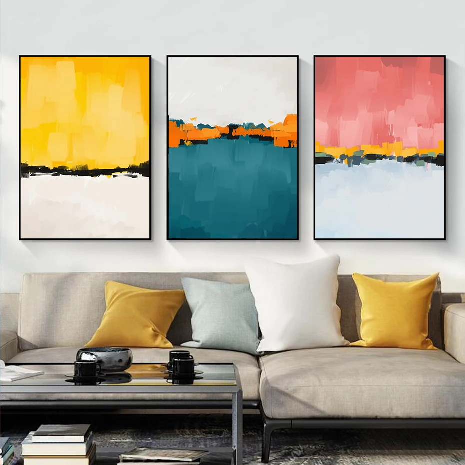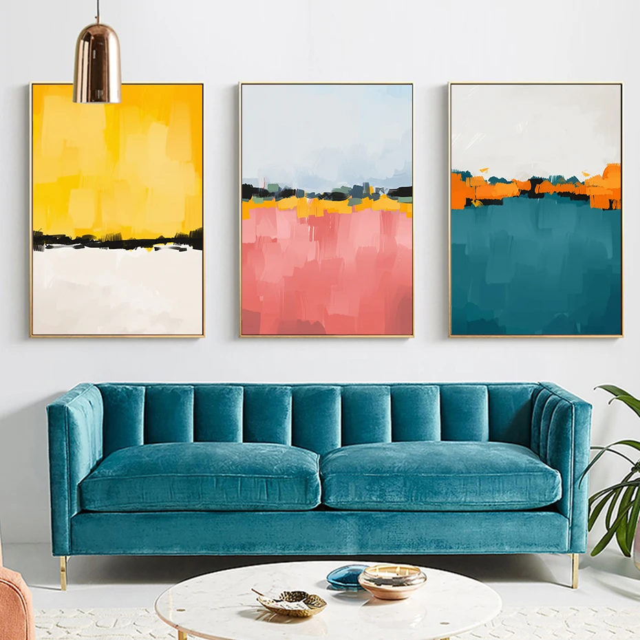 Абстрактный пейзаж, настенная живопись, постеры и принты в скандина...