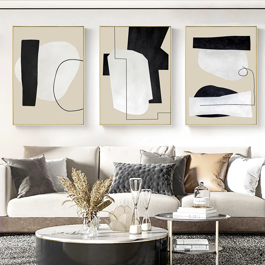 Современные бежевые черные абстрактные рисунки на холсте искусство ...